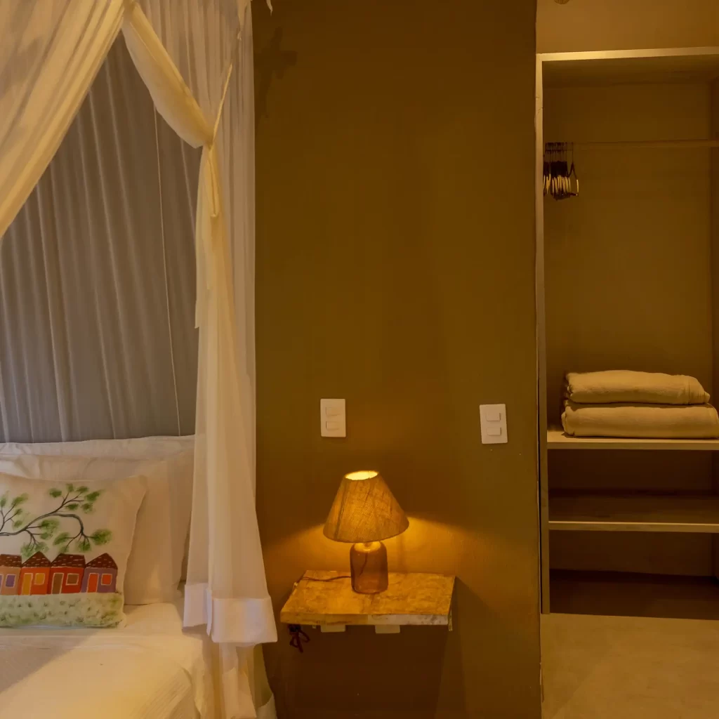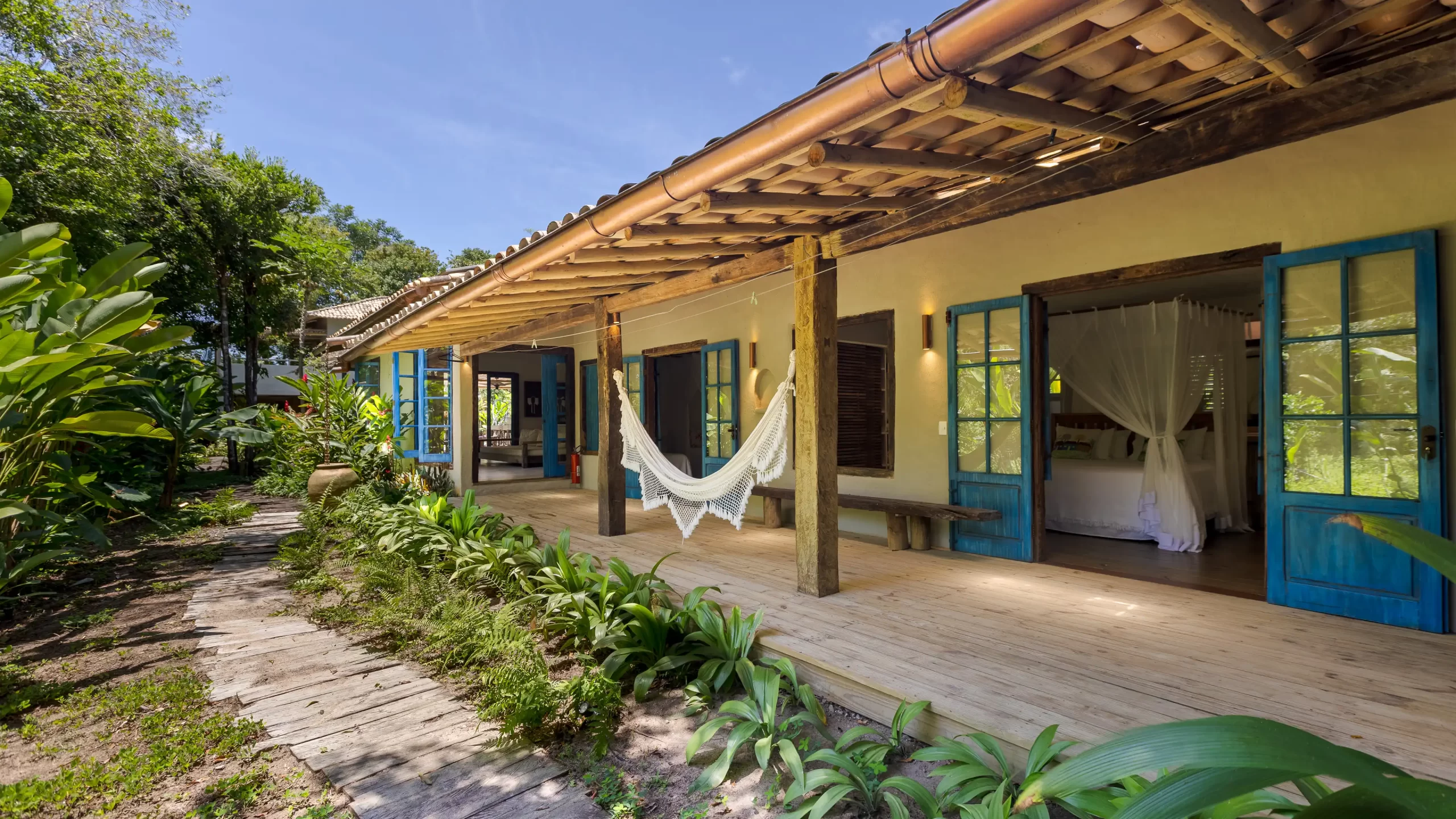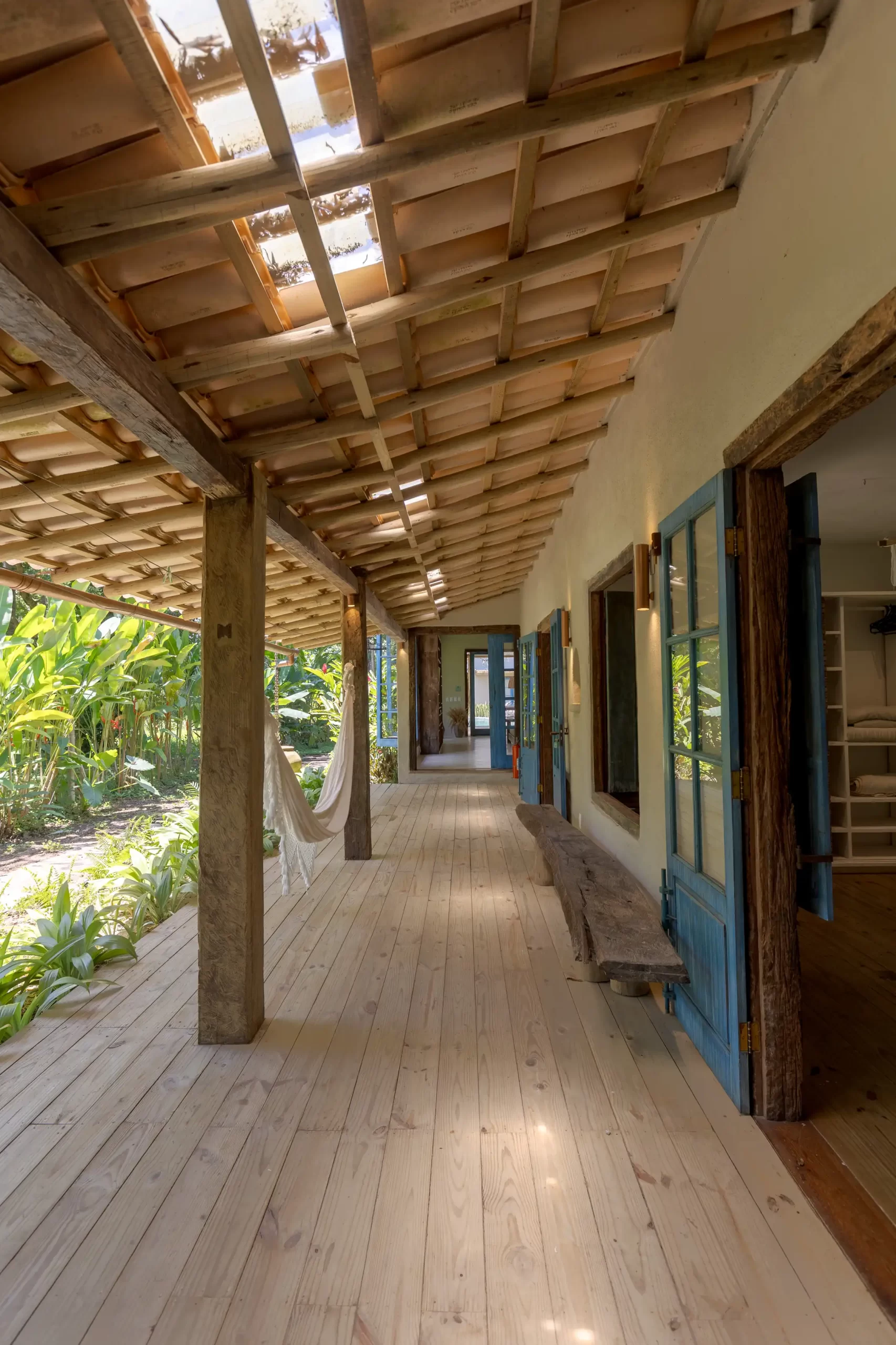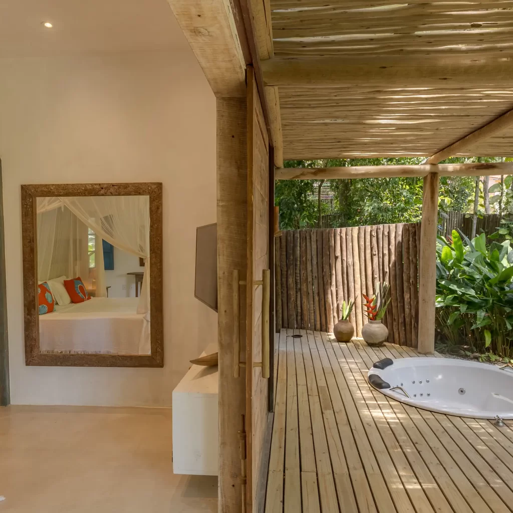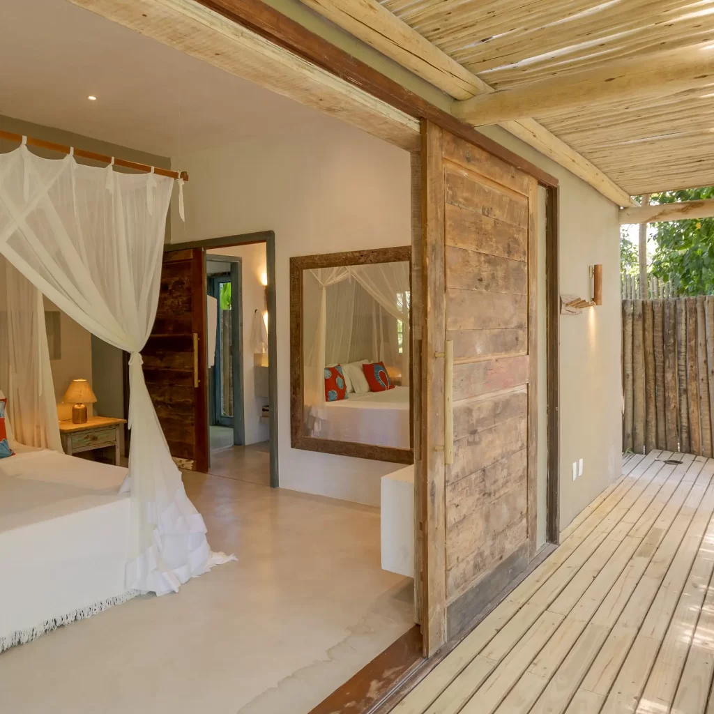 A casa nasceu do sonho de construir, neste lugar magnífico, uma residência que contasse um pouco da história da arquitetura popular baiana, amplamente inspirada na arquitetura colonial. Destacam-se portas e janelas provenientes de antigos casarões, assim como vigas e pilares, todos feitos de madeira nobre reaproveitada de demolições de construções antigas.