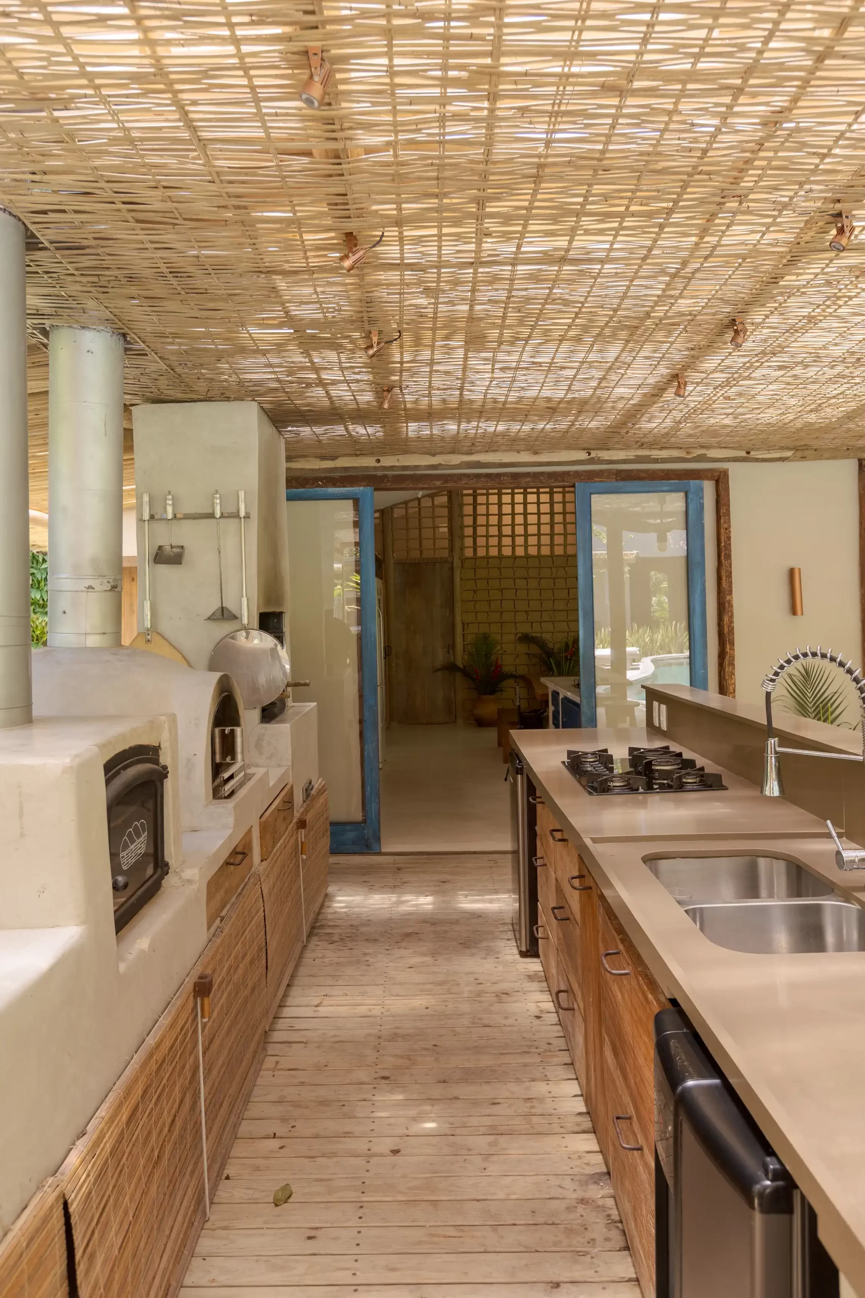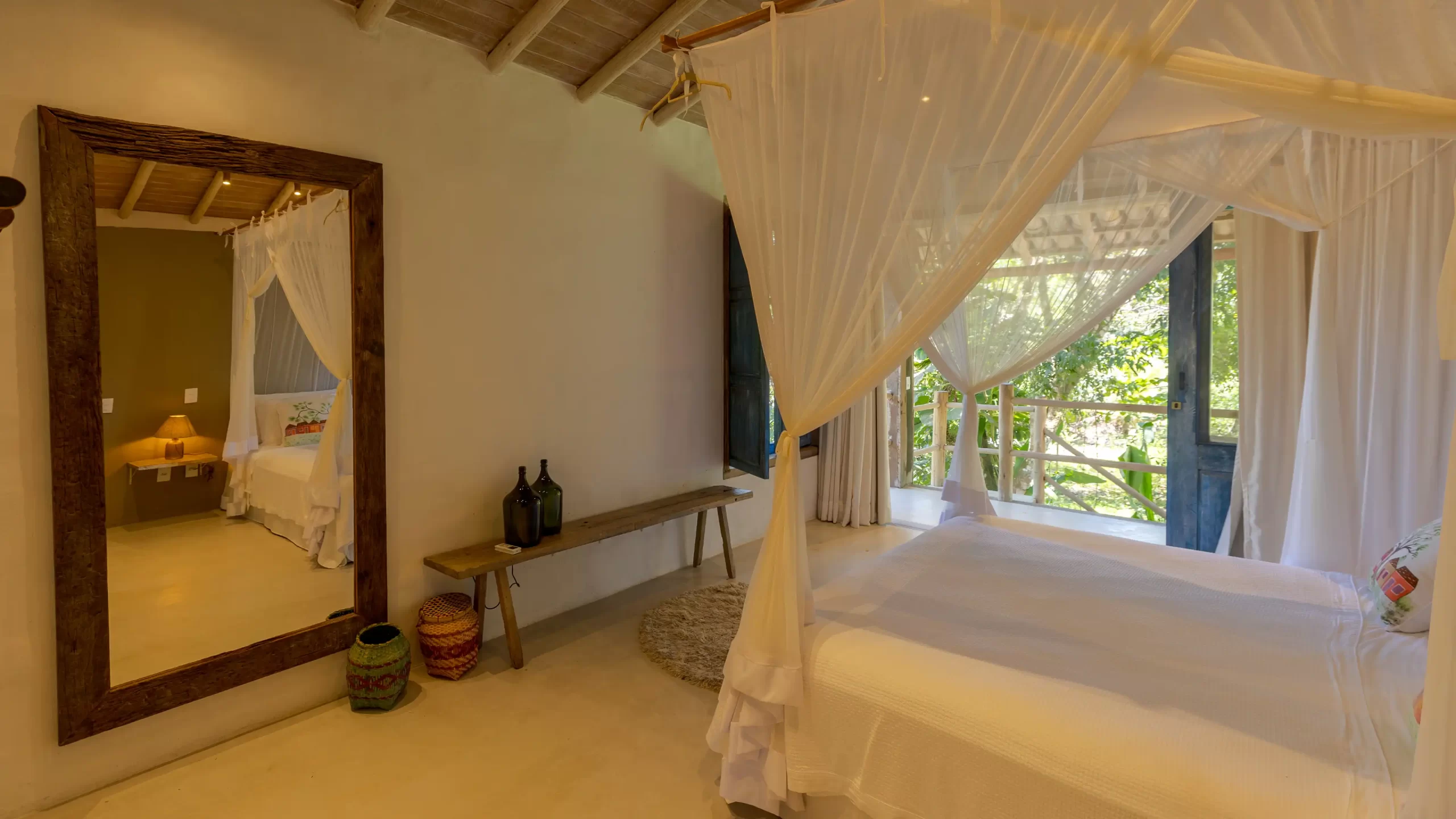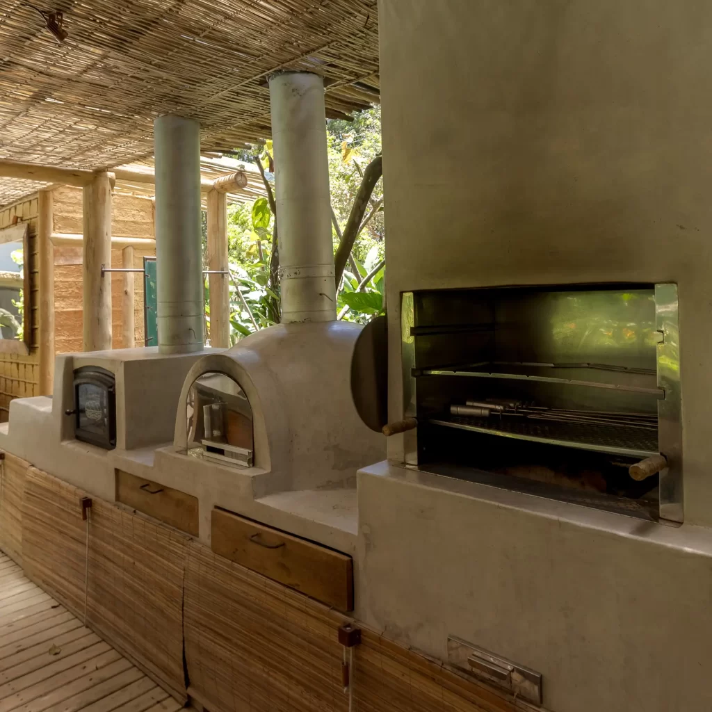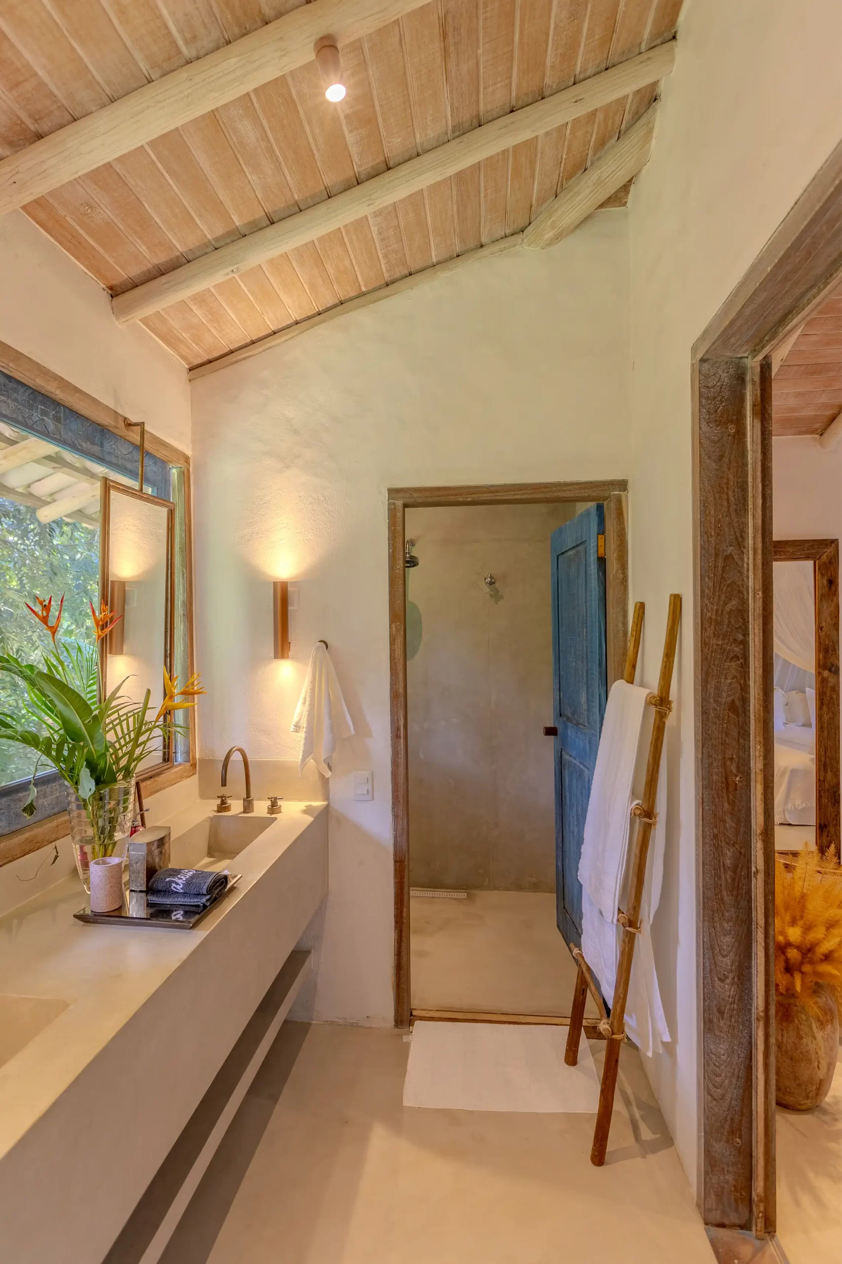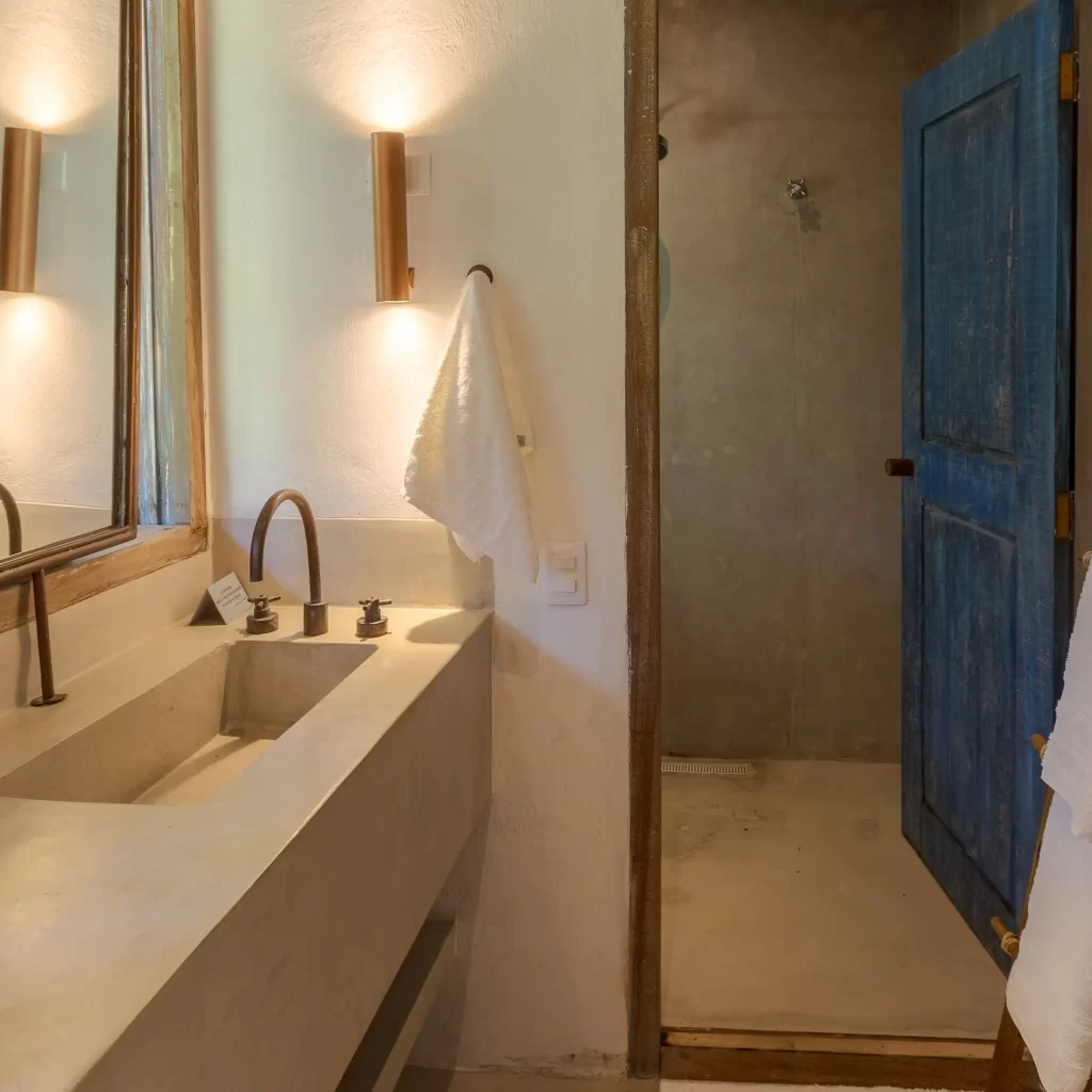 A casa nasceu do sonho de construir, neste lugar magnífico, uma residência que contasse um pouco da história da arquitetura popular baiana, amplamente inspirada na arquitetura colonial. Destacam-se portas e janelas provenientes de antigos casarões, assim como vigas e pilares, todos feitos de madeira nobre reaproveitada de demolições de construções antigas.