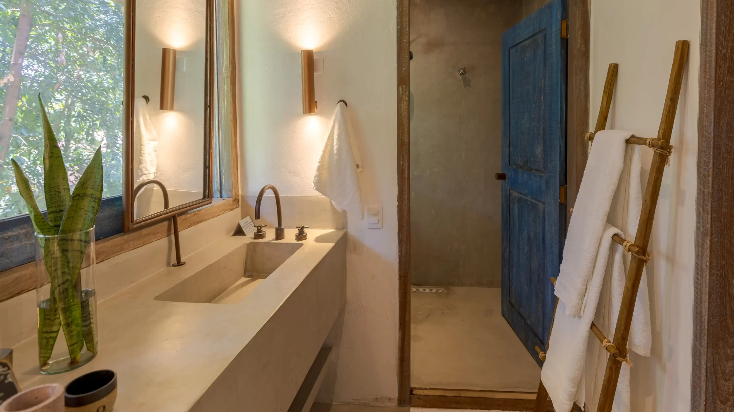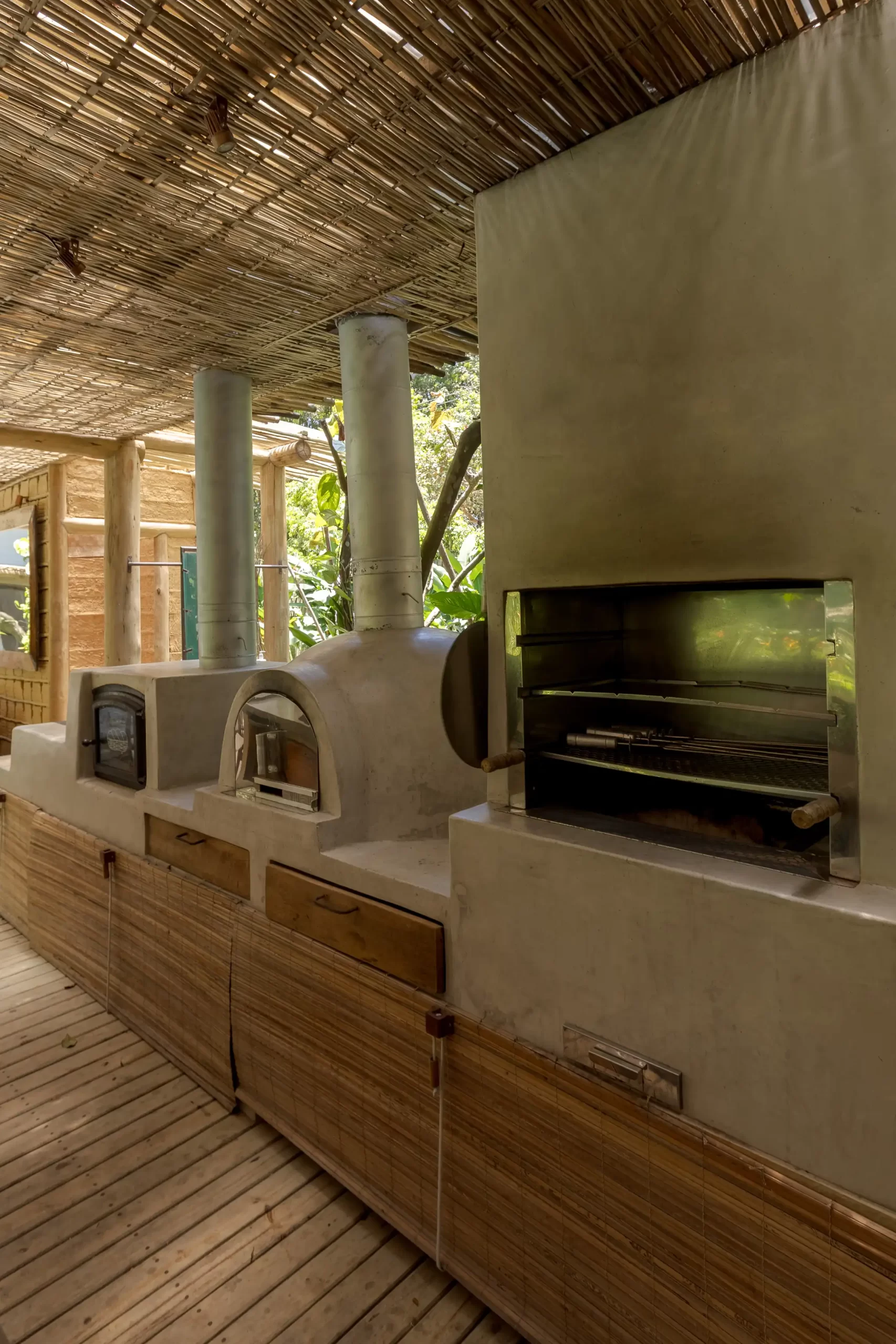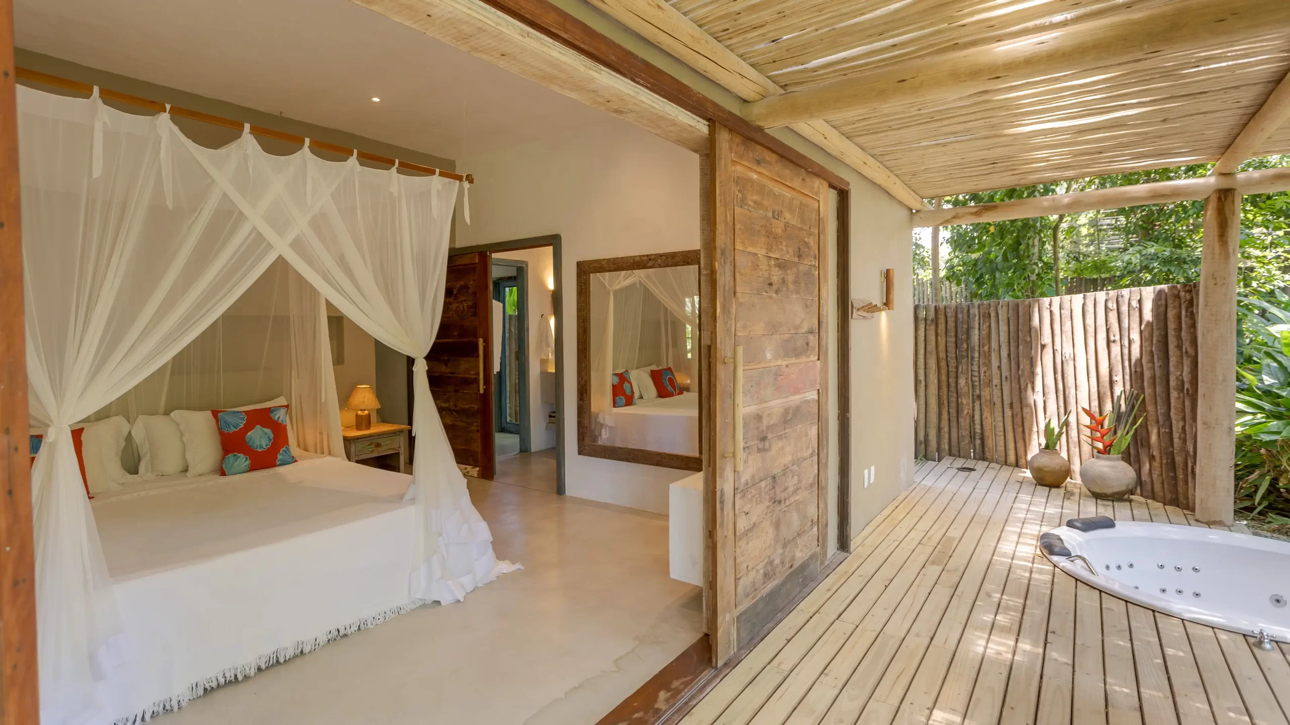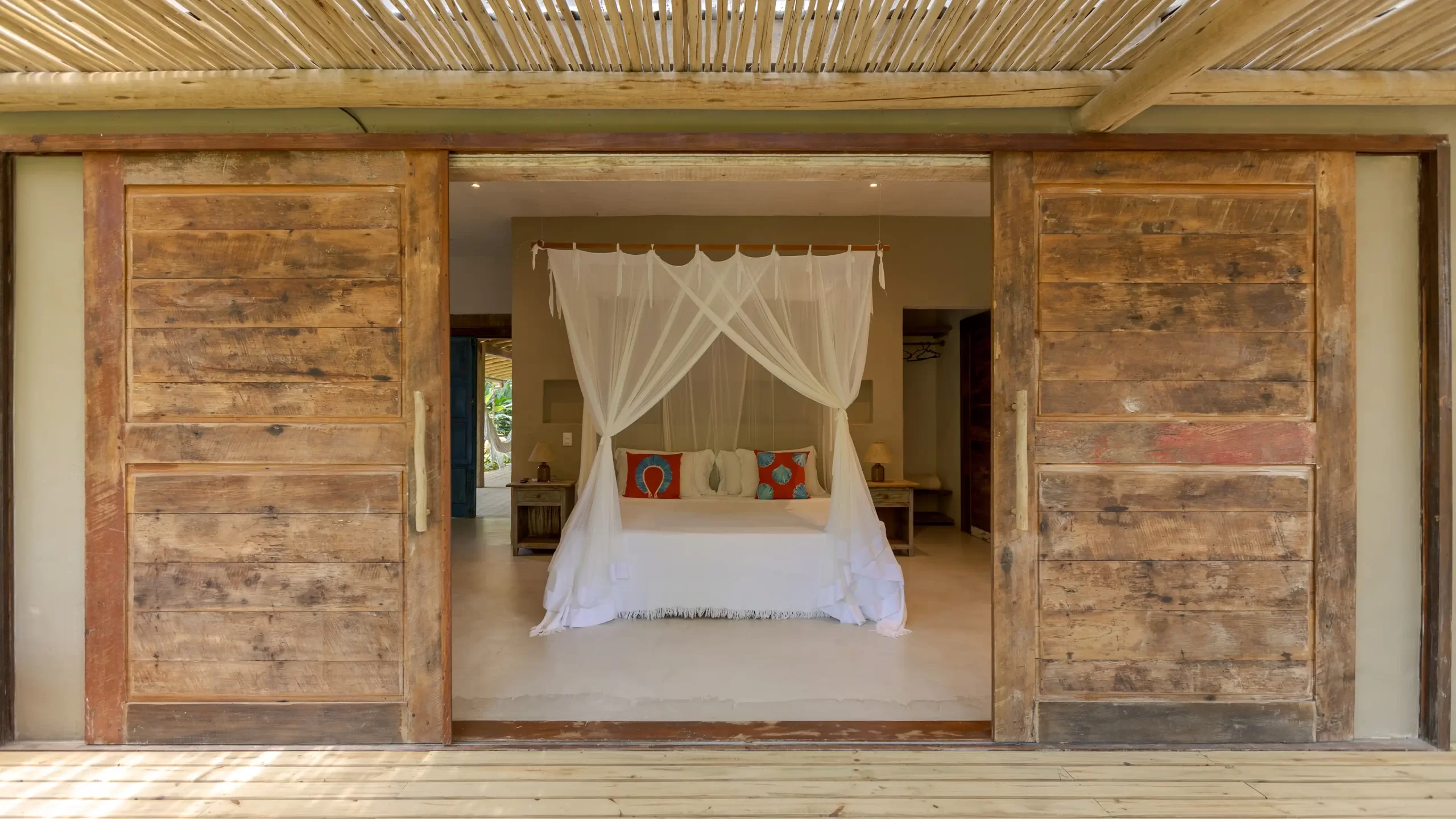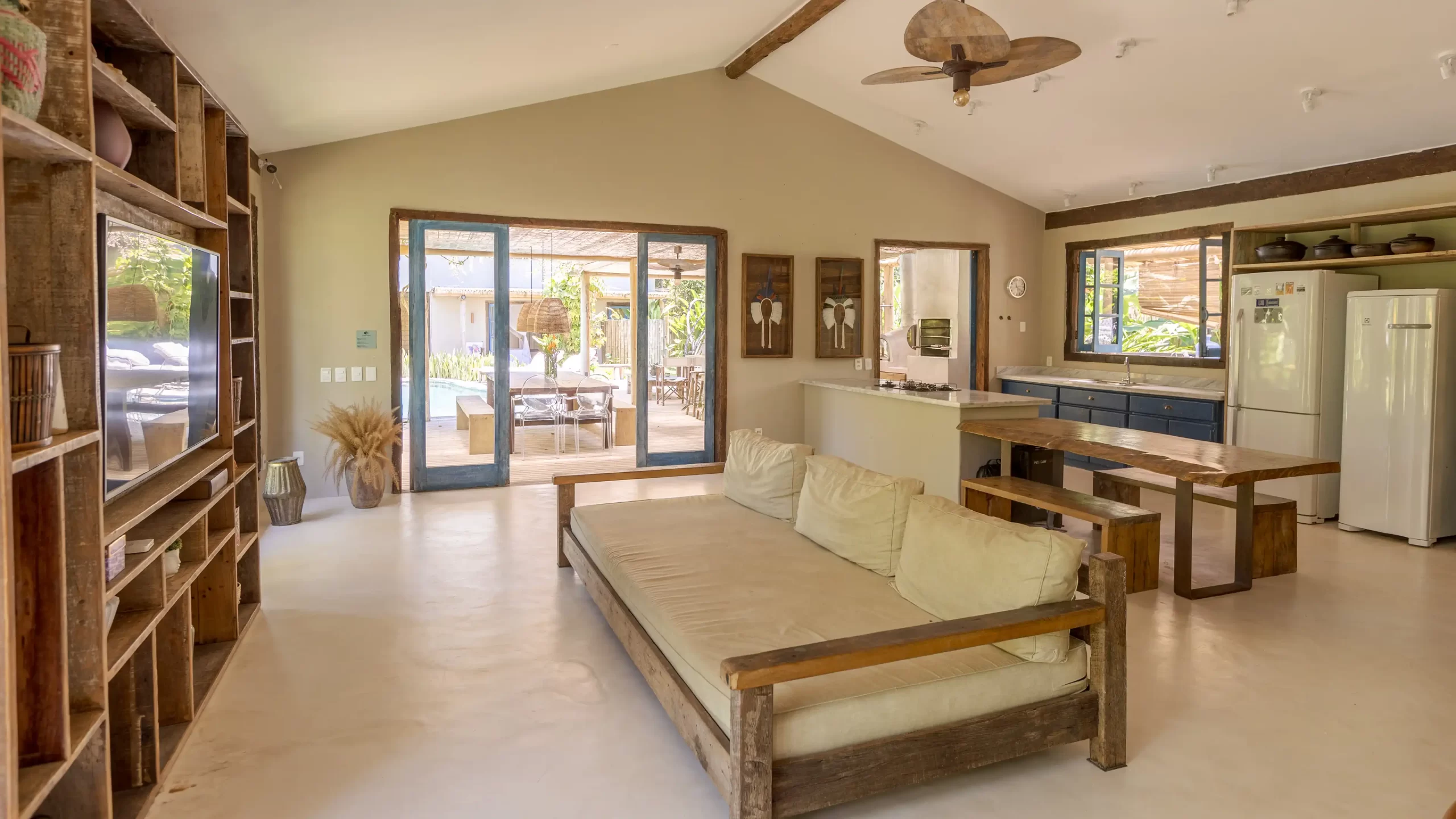 A casa nasceu do sonho de construir, neste lugar magnífico, uma residência que contasse um pouco da história da arquitetura popular baiana, amplamente inspirada na arquitetura colonial. Destacam-se portas e janelas provenientes de antigos casarões, assim como vigas e pilares, todos feitos de madeira nobre reaproveitada de demolições de construções antigas.