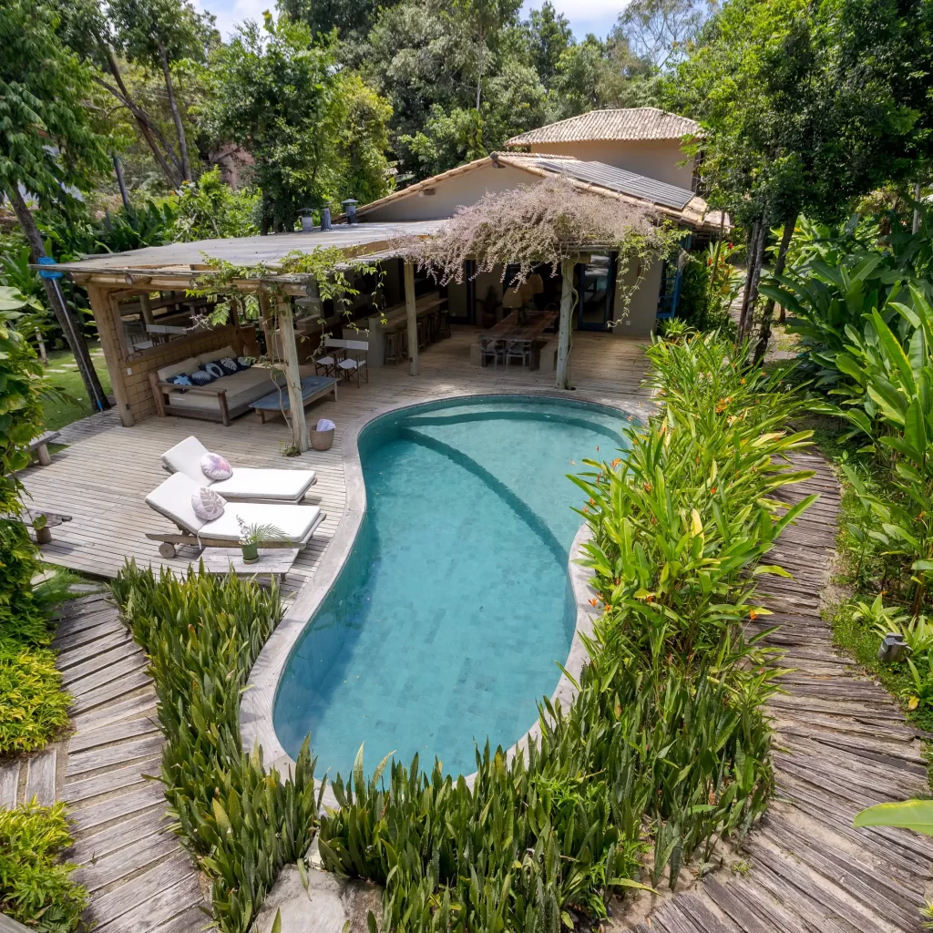 Localizada no exclusivo condomínio Altos de Trancoso, na charmosa vila de Trancoso, localizada no litoral sul da Bahia, Brasil. Reconhecido pelo seu projeto que combina luxo com a integração à natureza, o condomínio se destaca tanto pelo estilo arquitetônico das residências quanto pela sua localização privilegiada, com vista para o mar e uma proximidade única com as praias da região.