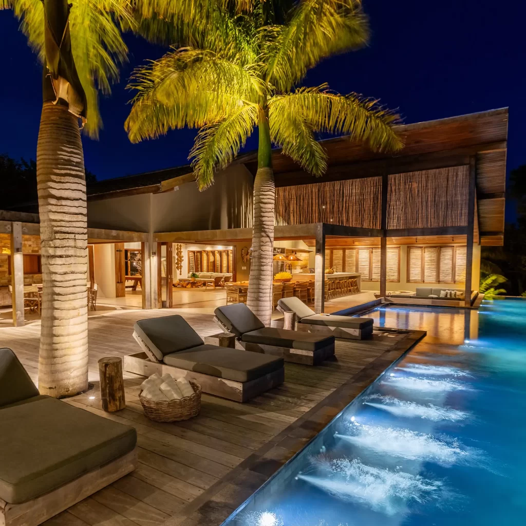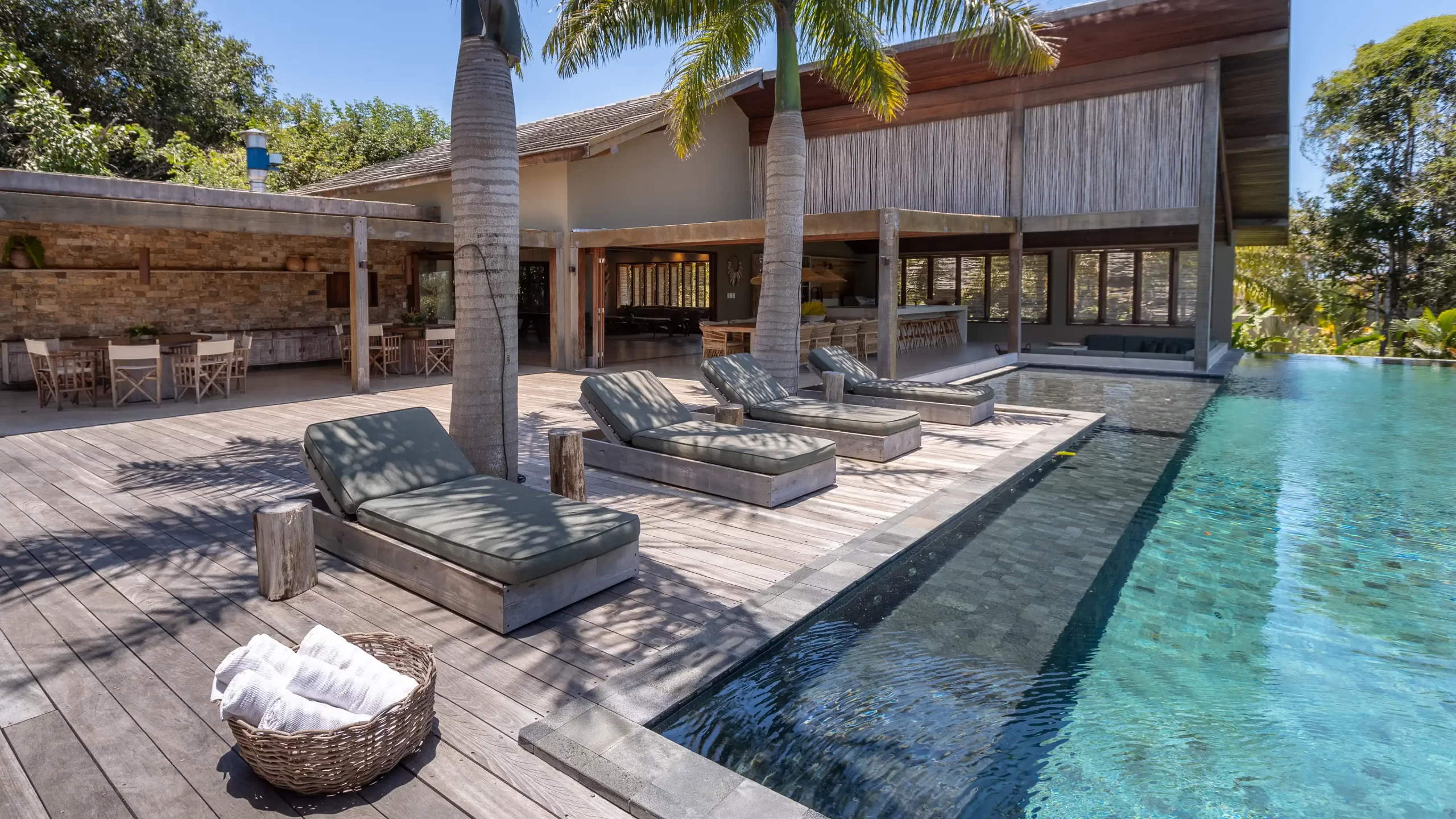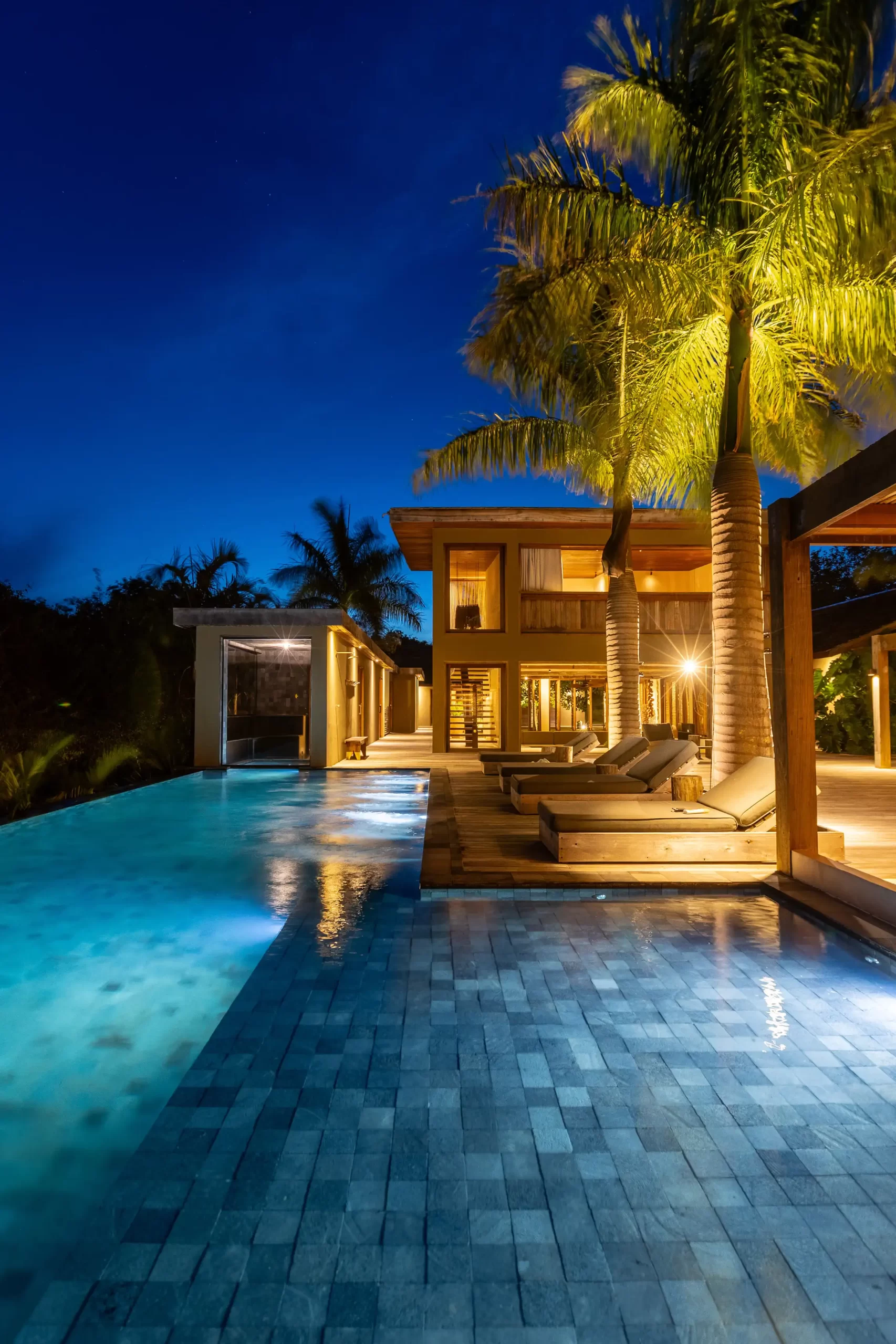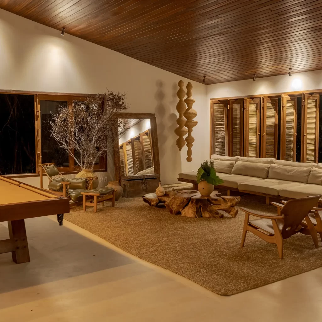 A Casa Figo é um convite a momentos inesquecíveis, em que cada detalhe foi pensado para elevar a experiência de estar. Suas áreas de convivência, integradas ao espaço externo, unem elegância contemporânea e leveza tropical, com living arejado, sala de bilhar, lounge à beira da piscina de borda infinita e sauna minimalista com vista panorâmica. As oito suítes luxuosas, incluindo uma master de 70m² com banheiro que oferece ducha ao ar livre, traduzem conforto e requinte em cada ambiente. Entre o deck de madeira, as espreguiçadeiras elegantes e a paisagem natural, cada instante vivido aqui se transforma em pura harmonia.