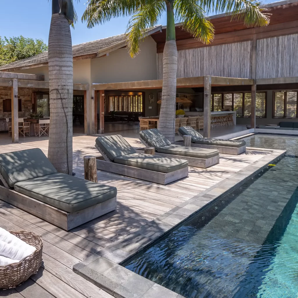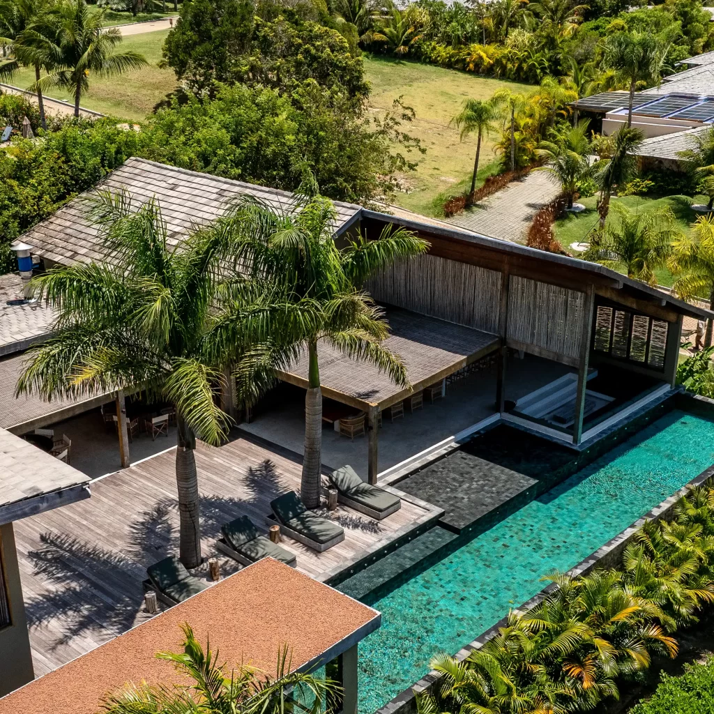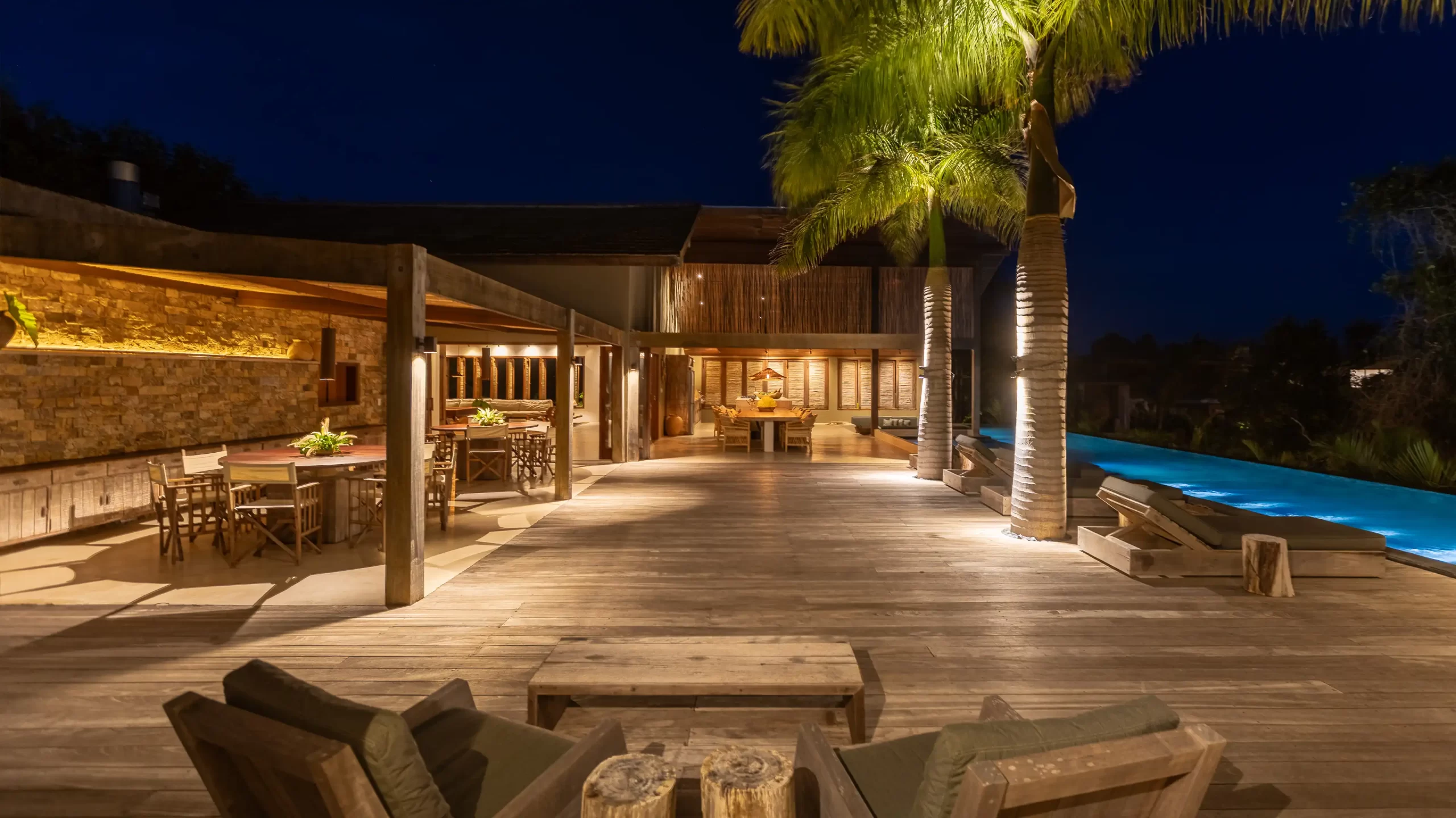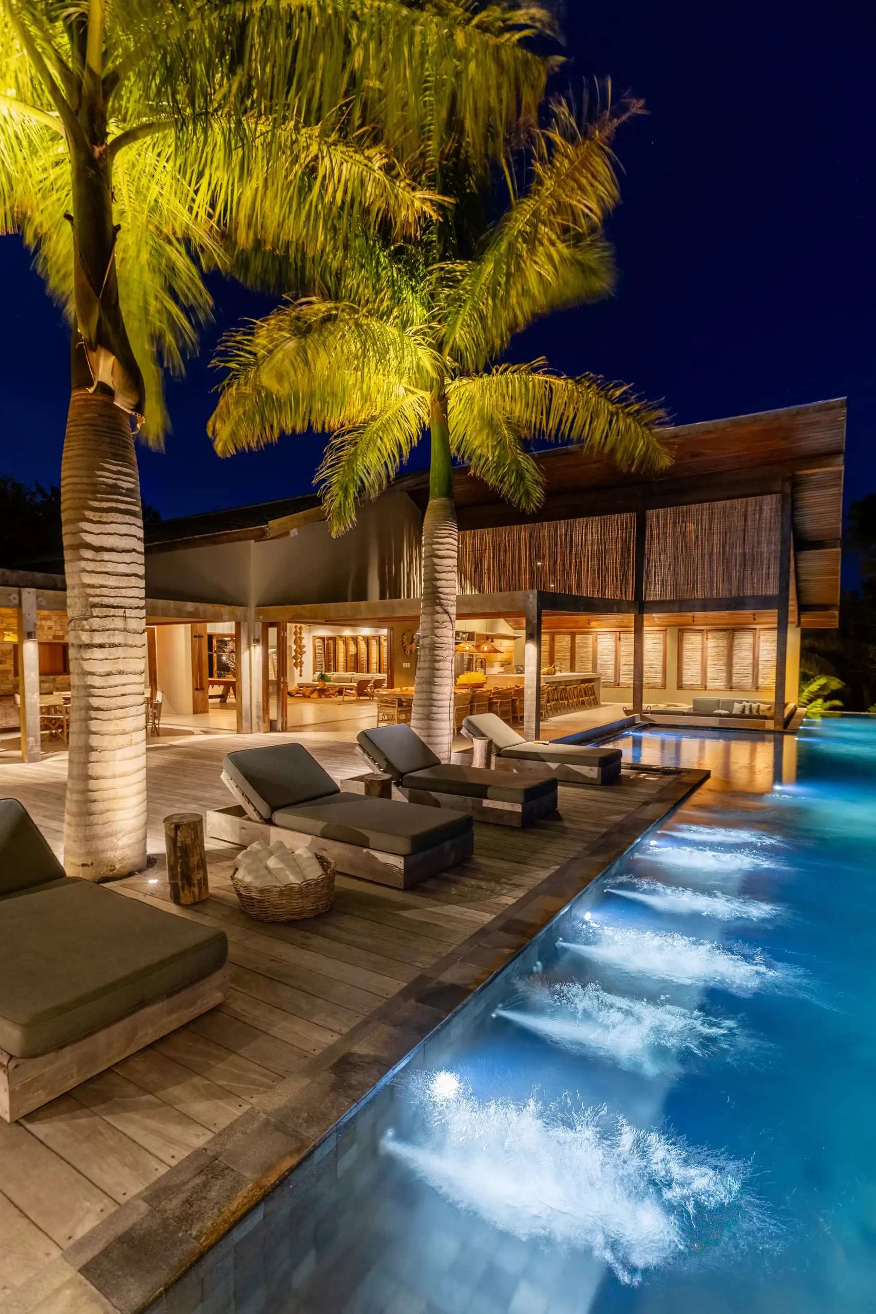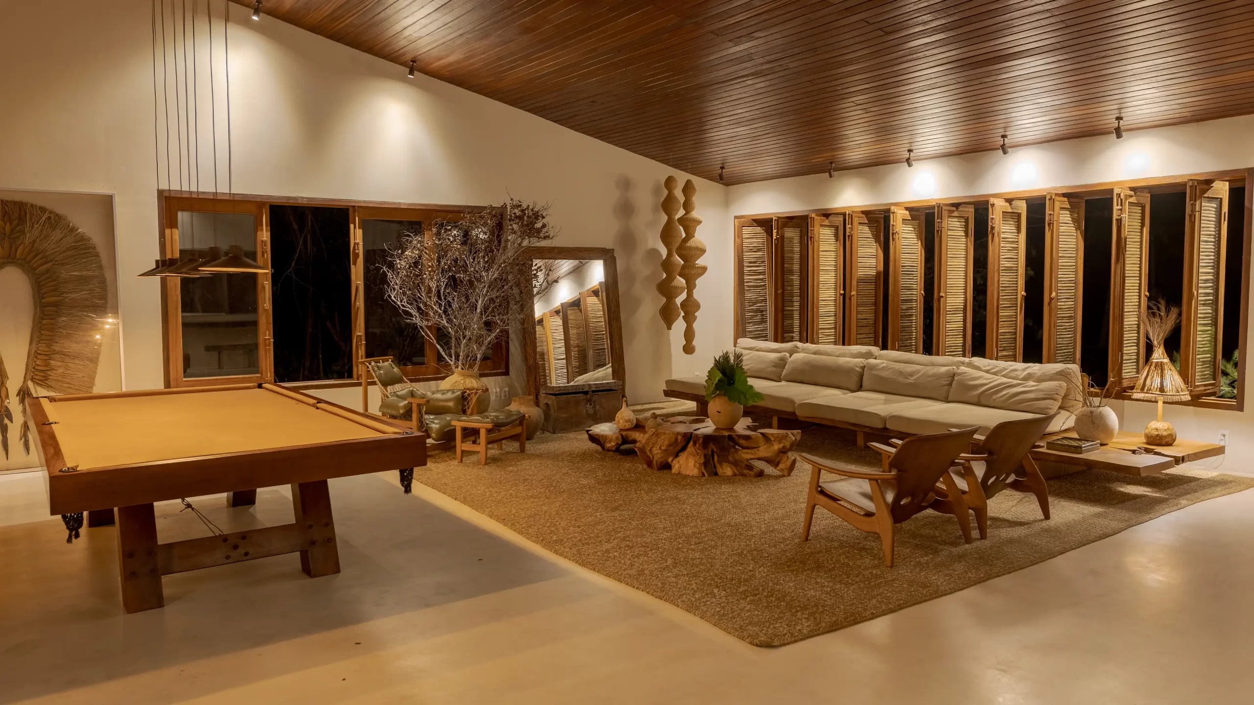 A Casa Figo é um convite a momentos inesquecíveis, em que cada detalhe foi pensado para elevar a experiência de estar. Suas áreas de convivência, integradas ao espaço externo, unem elegância contemporânea e leveza tropical, com living arejado, sala de bilhar, lounge à beira da piscina de borda infinita e sauna minimalista com vista panorâmica. As oito suítes luxuosas, incluindo uma master de 70m² com banheiro que oferece ducha ao ar livre, traduzem conforto e requinte em cada ambiente. Entre o deck de madeira, as espreguiçadeiras elegantes e a paisagem natural, cada instante vivido aqui se transforma em pura harmonia.