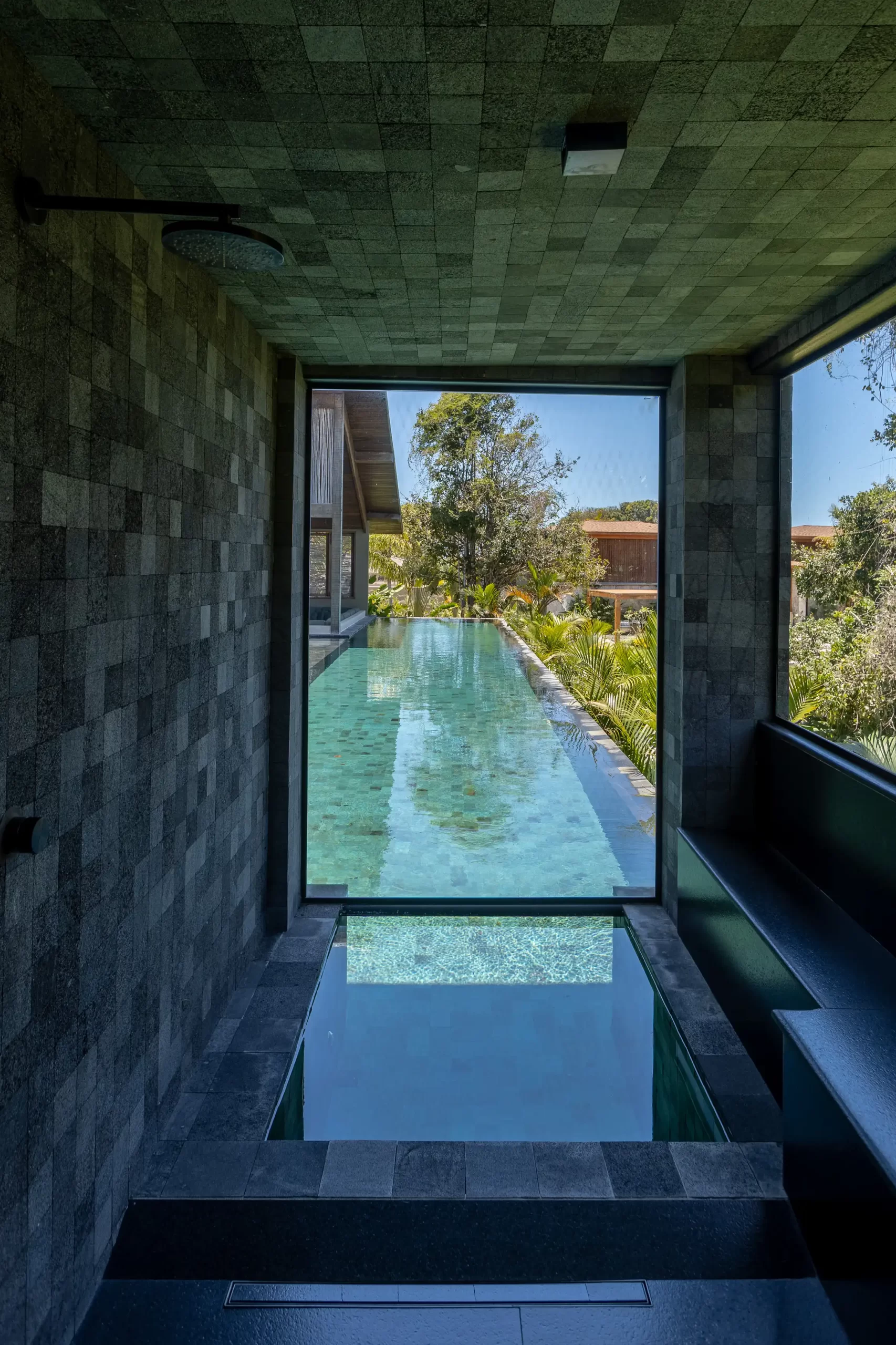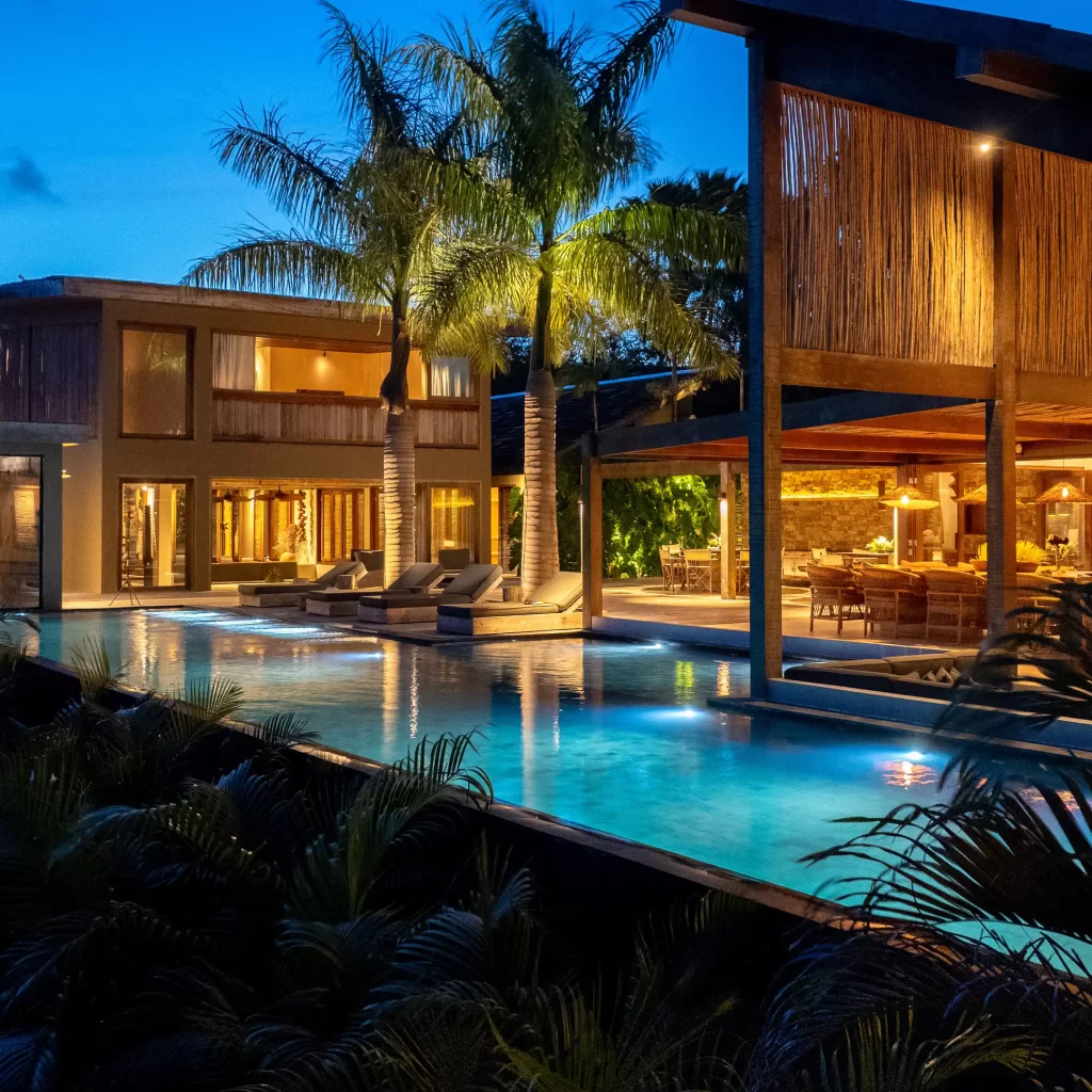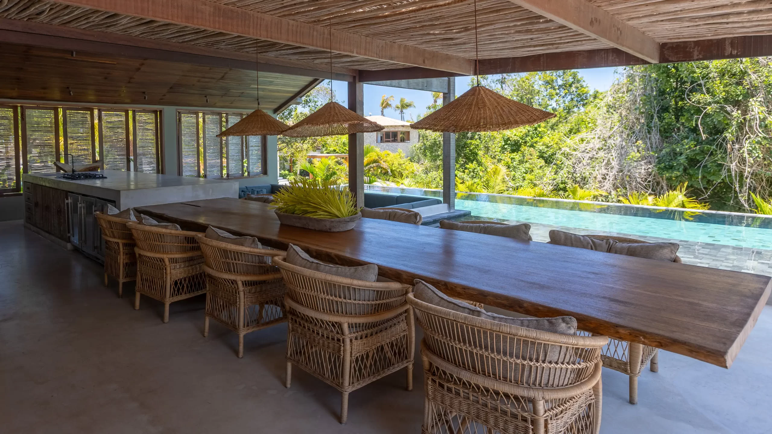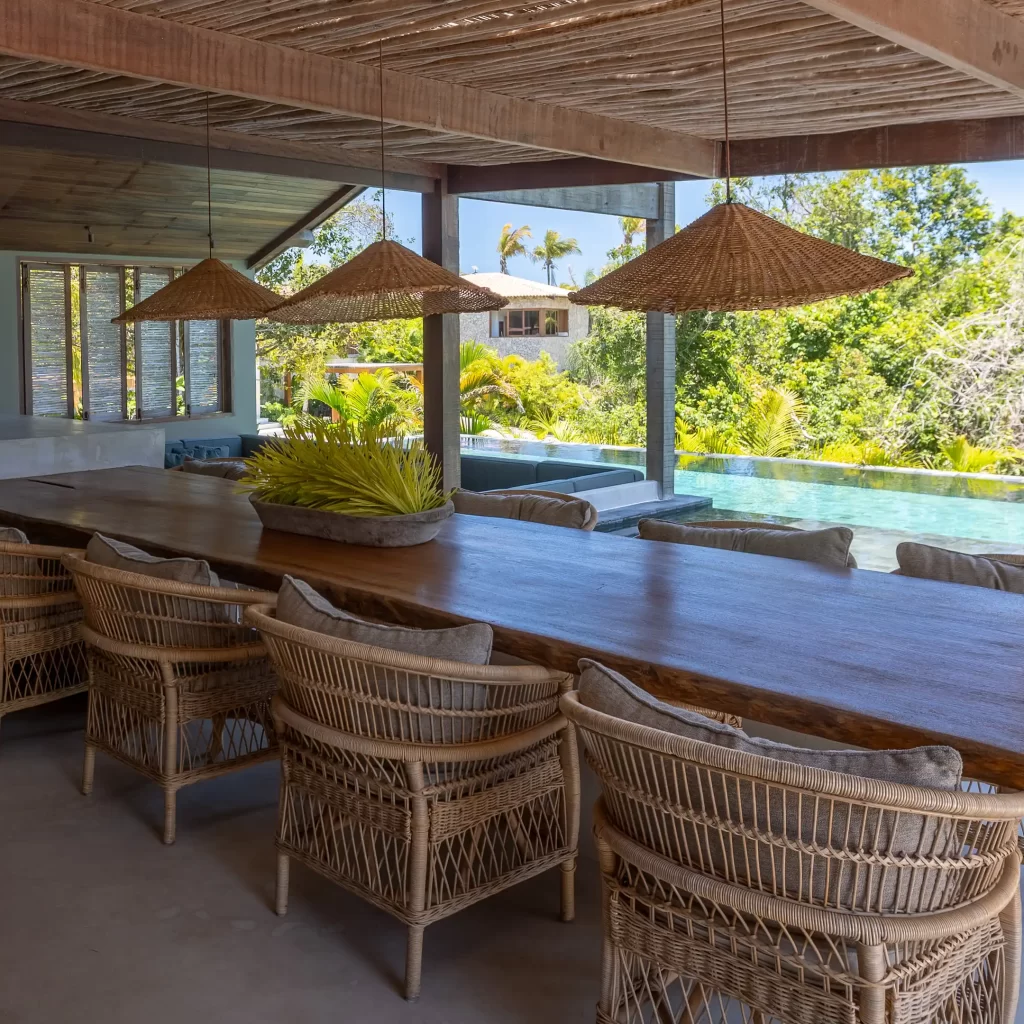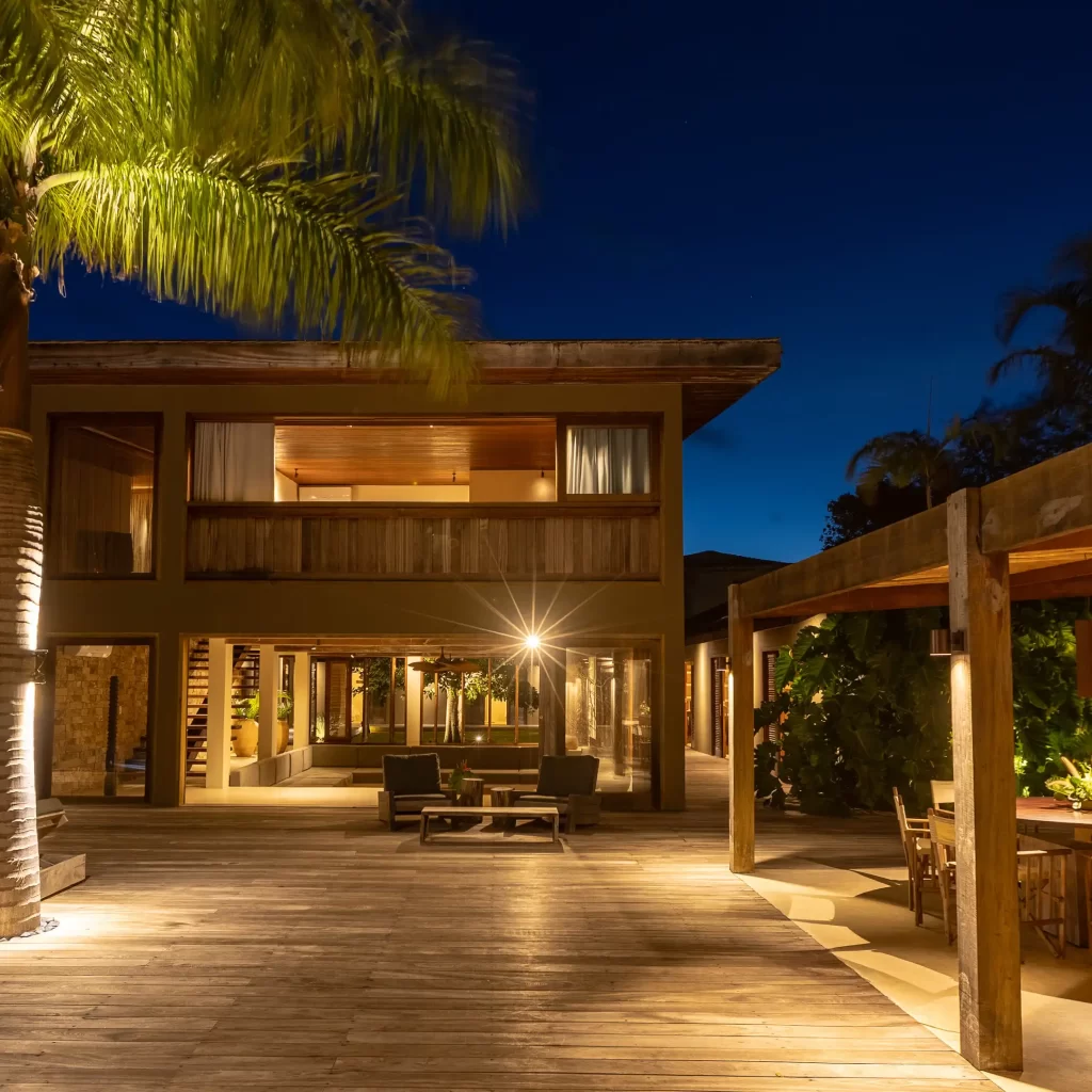 A Casa Figo é um convite a momentos inesquecíveis, em que cada detalhe foi pensado para elevar a experiência de estar. Suas áreas de convivência, integradas ao espaço externo, unem elegância contemporânea e leveza tropical, com living arejado, sala de bilhar, lounge à beira da piscina de borda infinita e sauna minimalista com vista panorâmica. As oito suítes luxuosas, incluindo uma master de 70m² com banheiro que oferece ducha ao ar livre, traduzem conforto e requinte em cada ambiente. Entre o deck de madeira, as espreguiçadeiras elegantes e a paisagem natural, cada instante vivido aqui se transforma em pura harmonia.