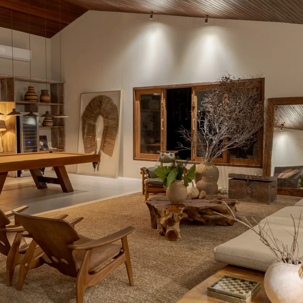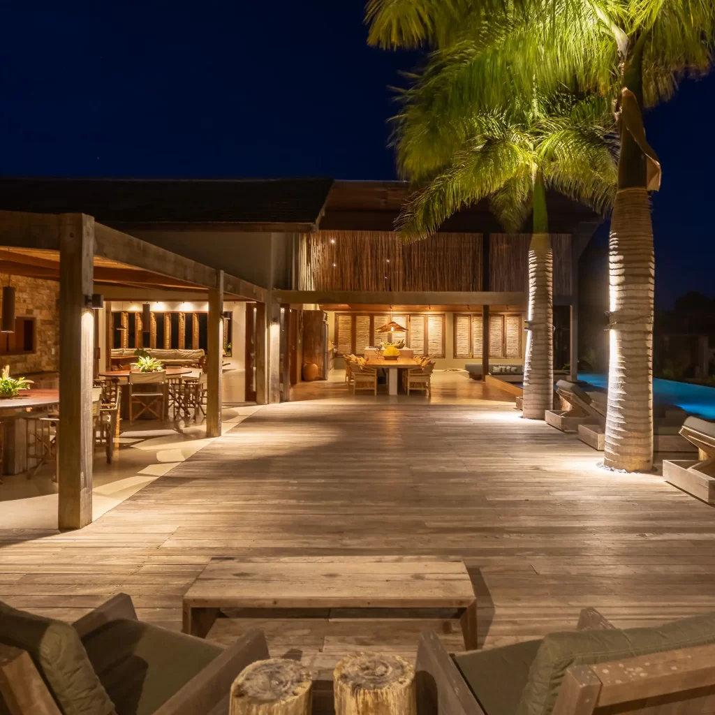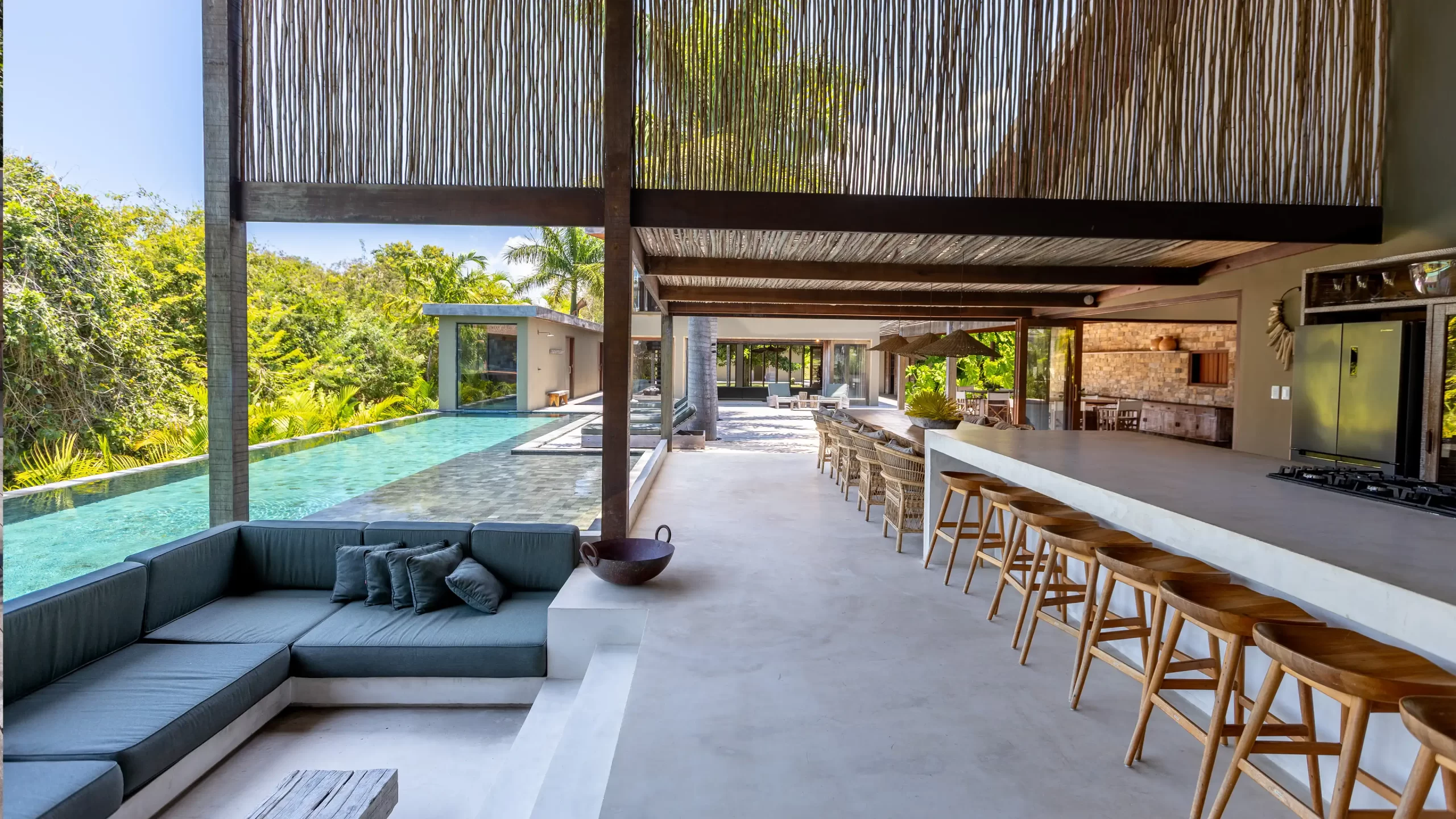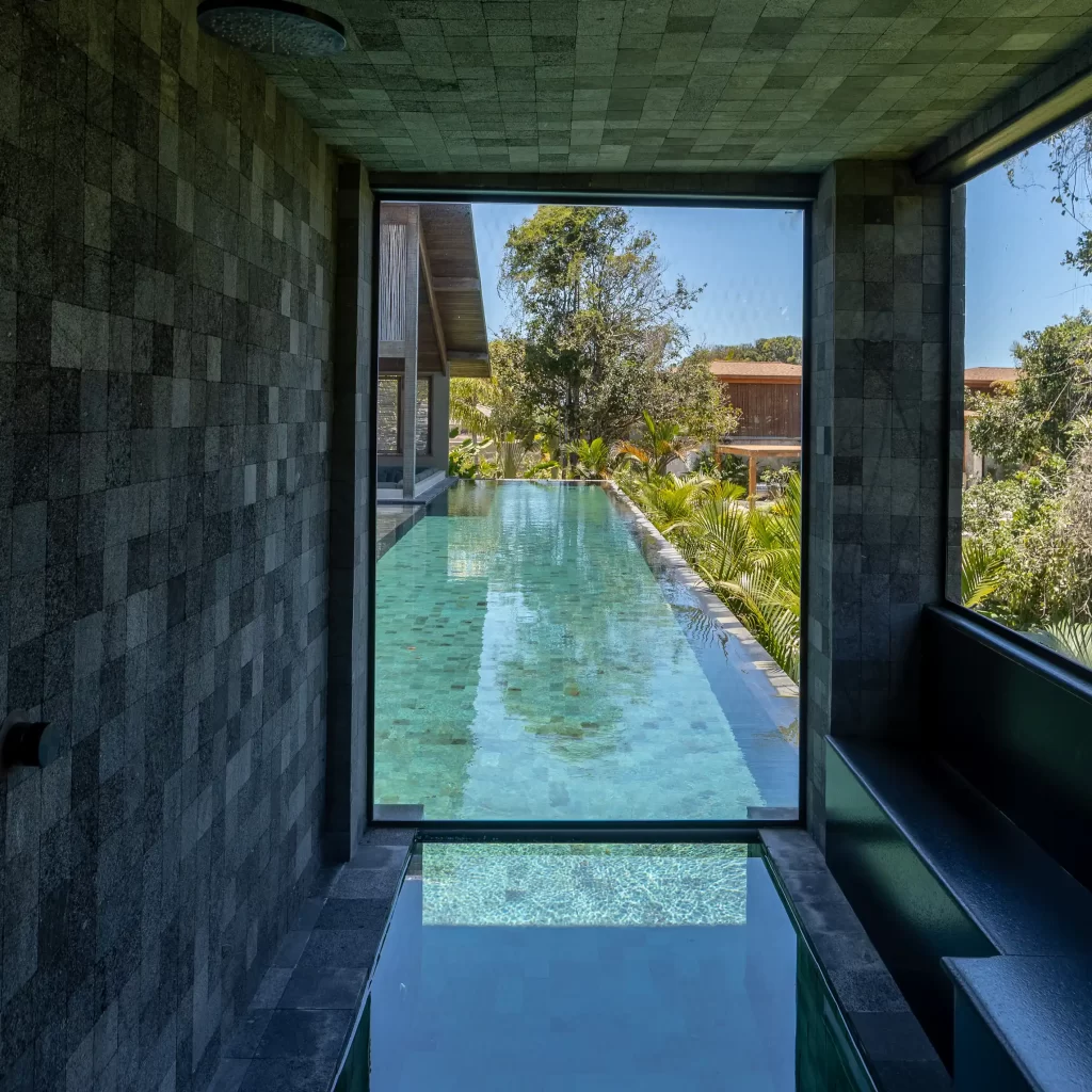 A Casa Figo é um convite a momentos inesquecíveis, em que cada detalhe foi pensado para elevar a experiência de estar. Suas áreas de convivência, integradas ao espaço externo, unem elegância contemporânea e leveza tropical, com living arejado, sala de bilhar, lounge à beira da piscina de borda infinita e sauna minimalista com vista panorâmica. As oito suítes luxuosas, incluindo uma master de 70m² com banheiro que oferece ducha ao ar livre, traduzem conforto e requinte em cada ambiente. Entre o deck de madeira, as espreguiçadeiras elegantes e a paisagem natural, cada instante vivido aqui se transforma em pura harmonia.