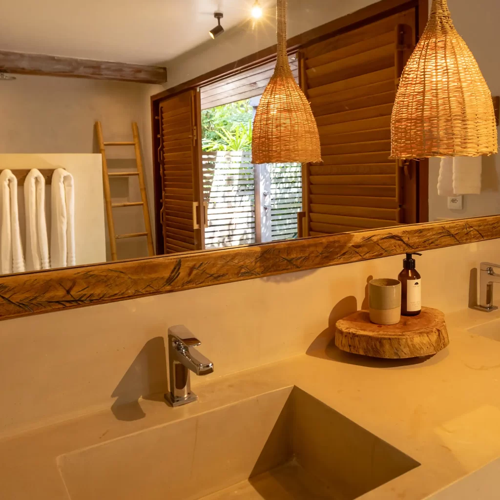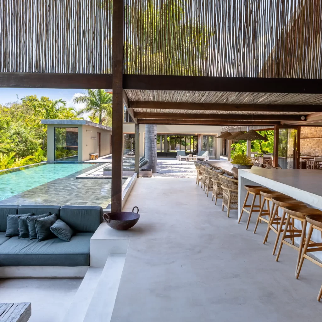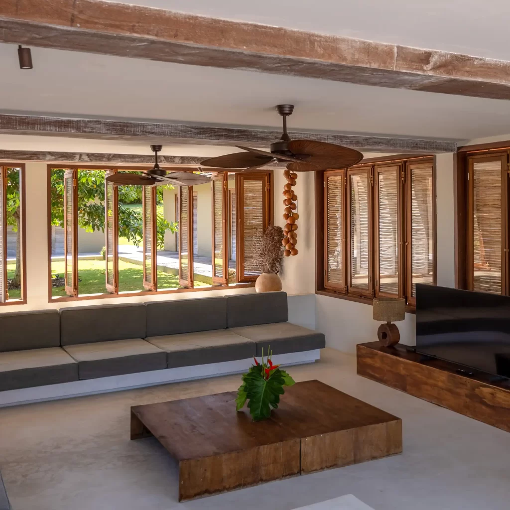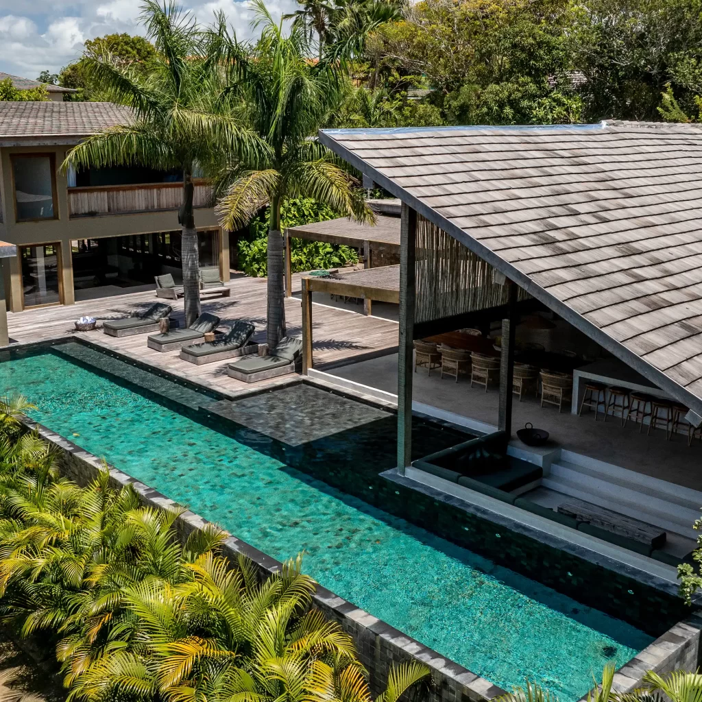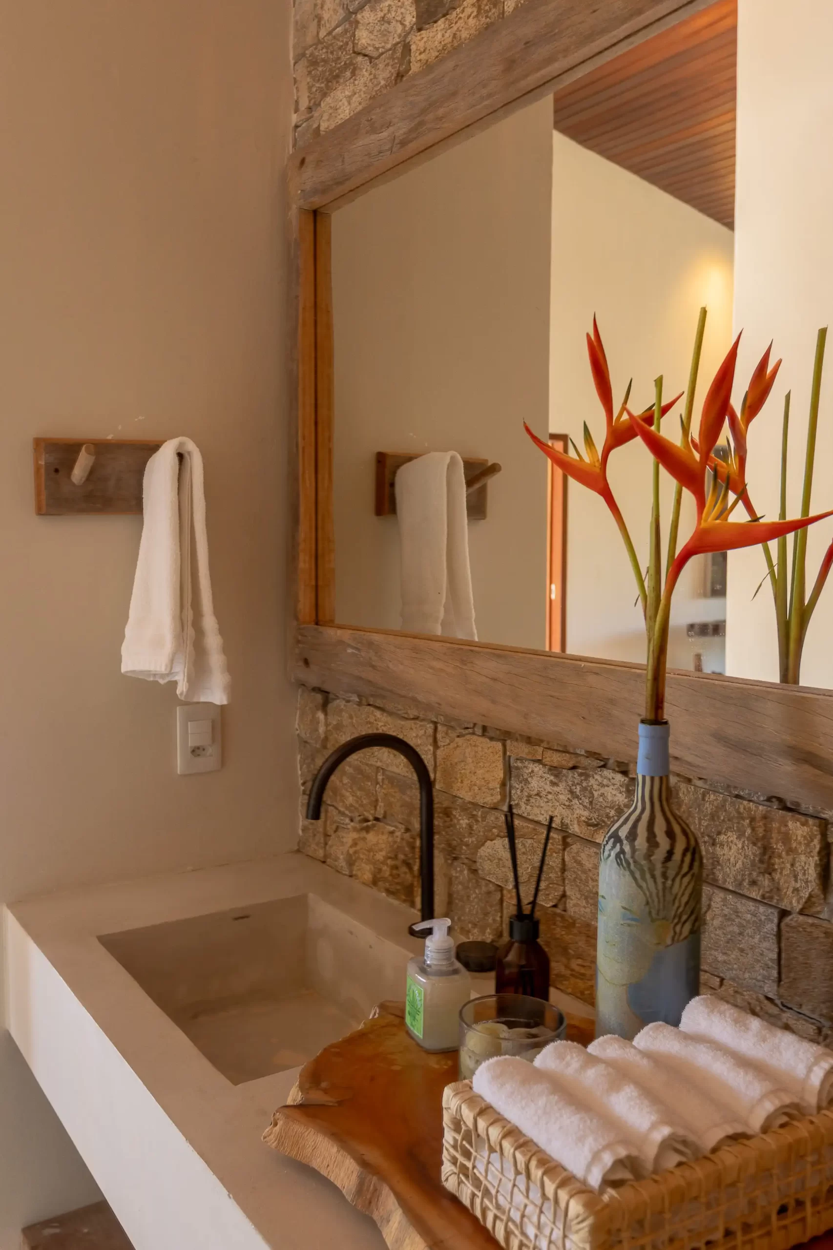 A Casa Figo é um convite a momentos inesquecíveis, em que cada detalhe foi pensado para elevar a experiência de estar. Suas áreas de convivência, integradas ao espaço externo, unem elegância contemporânea e leveza tropical, com living arejado, sala de bilhar, lounge à beira da piscina de borda infinita e sauna minimalista com vista panorâmica. As oito suítes luxuosas, incluindo uma master de 70m² com banheiro que oferece ducha ao ar livre, traduzem conforto e requinte em cada ambiente. Entre o deck de madeira, as espreguiçadeiras elegantes e a paisagem natural, cada instante vivido aqui se transforma em pura harmonia.