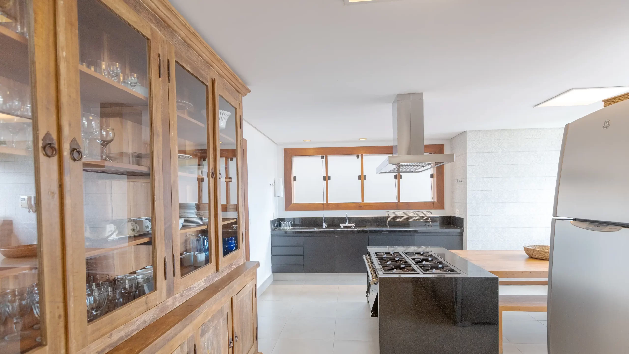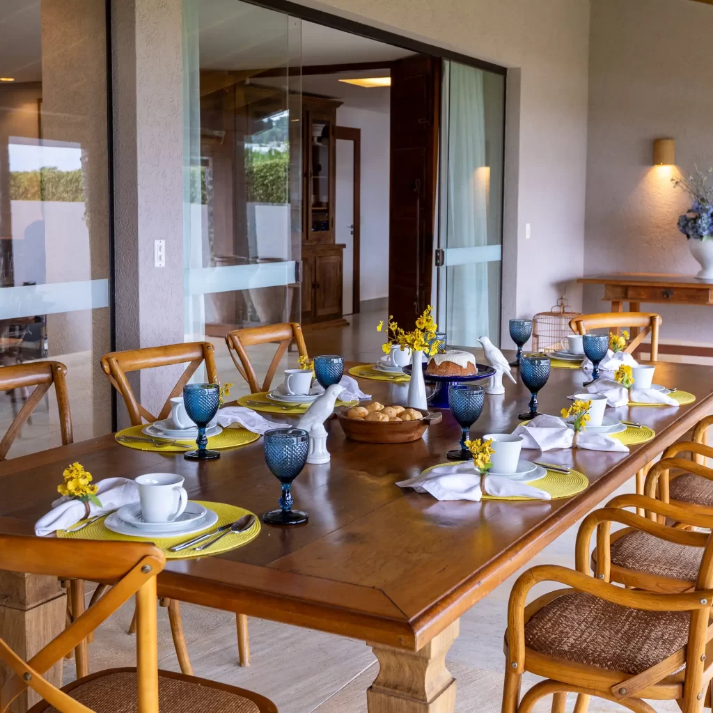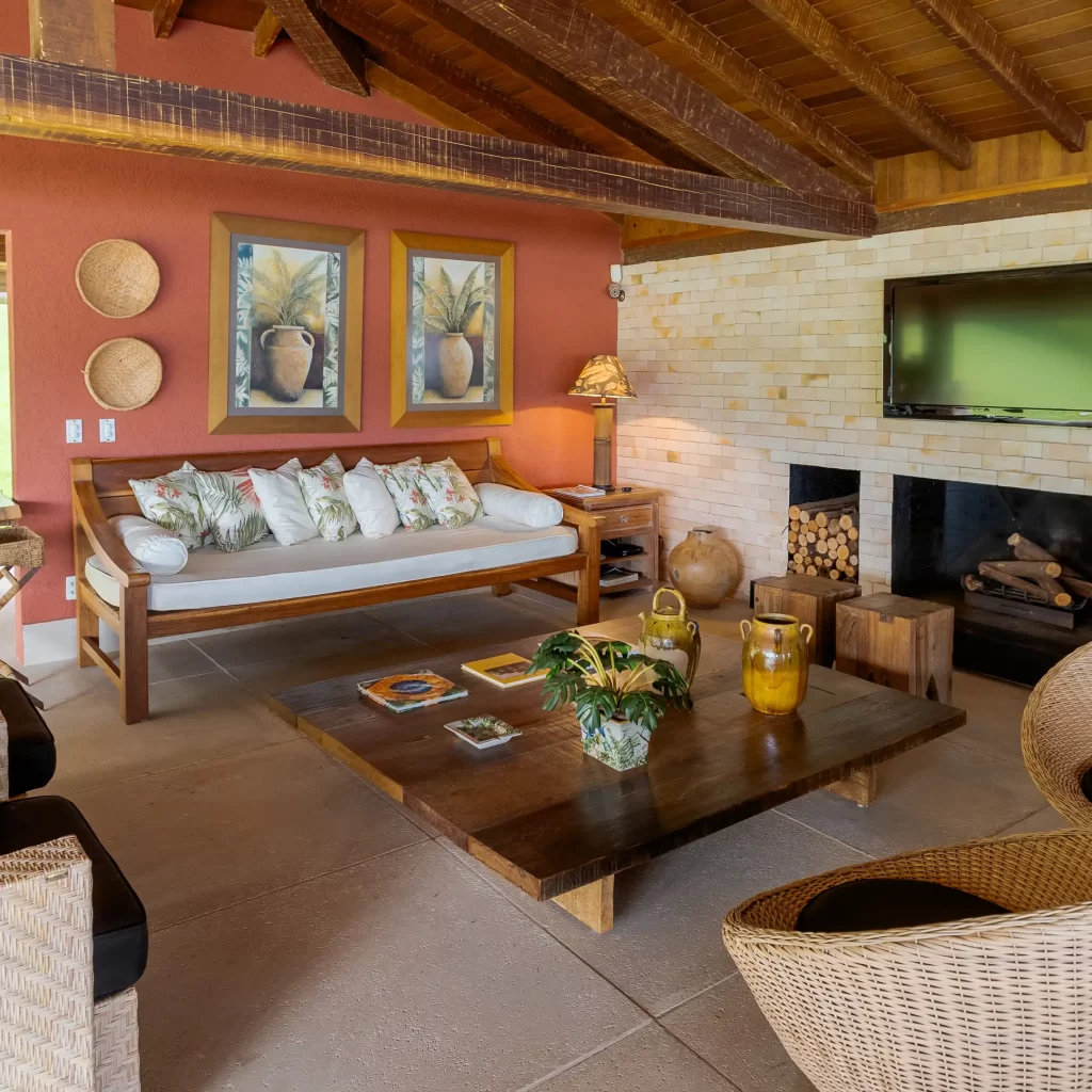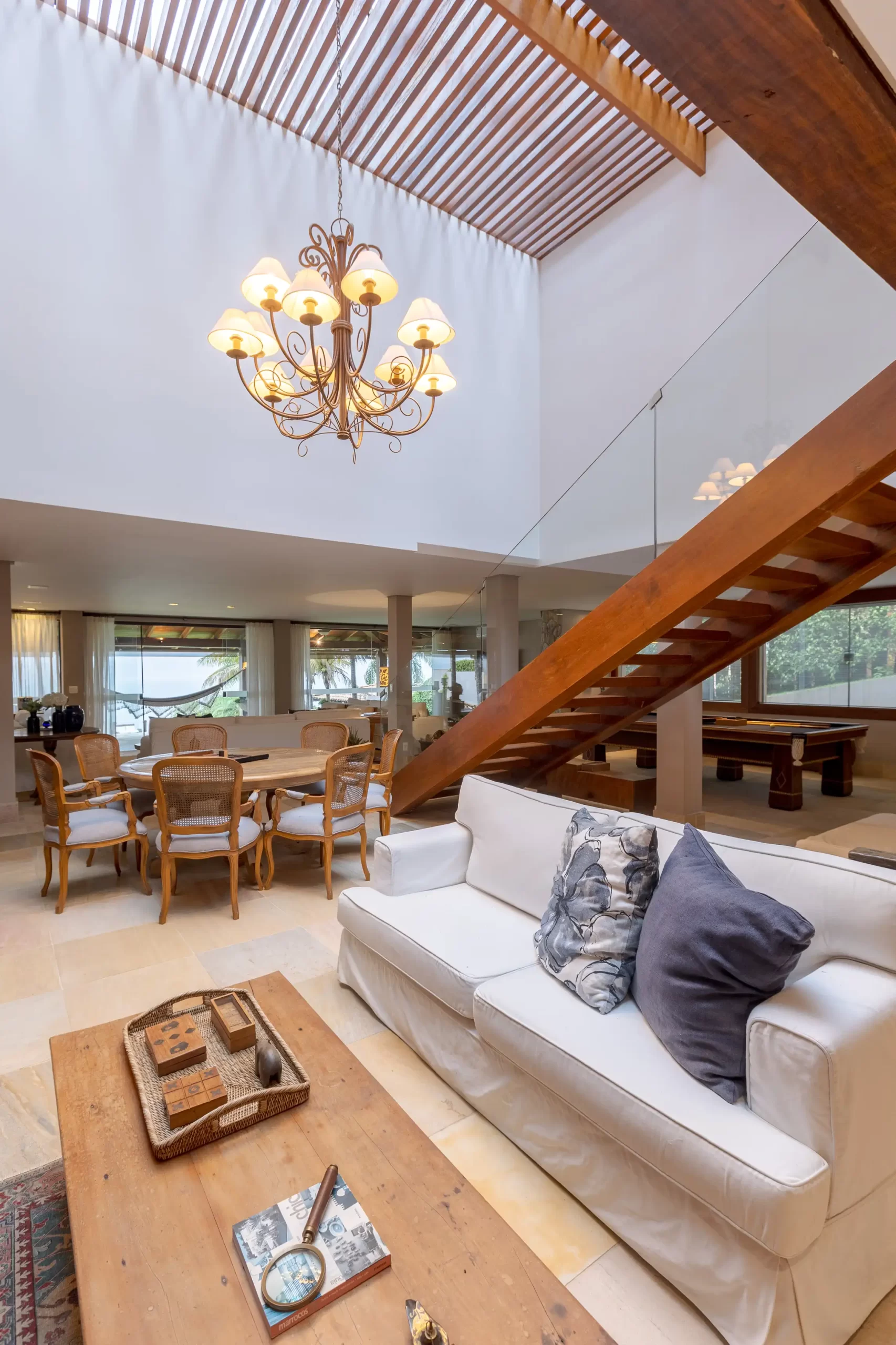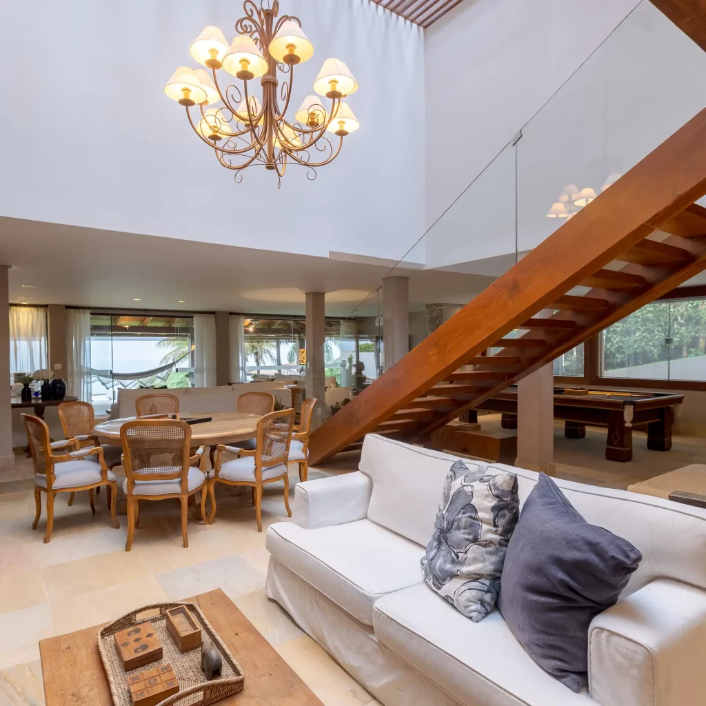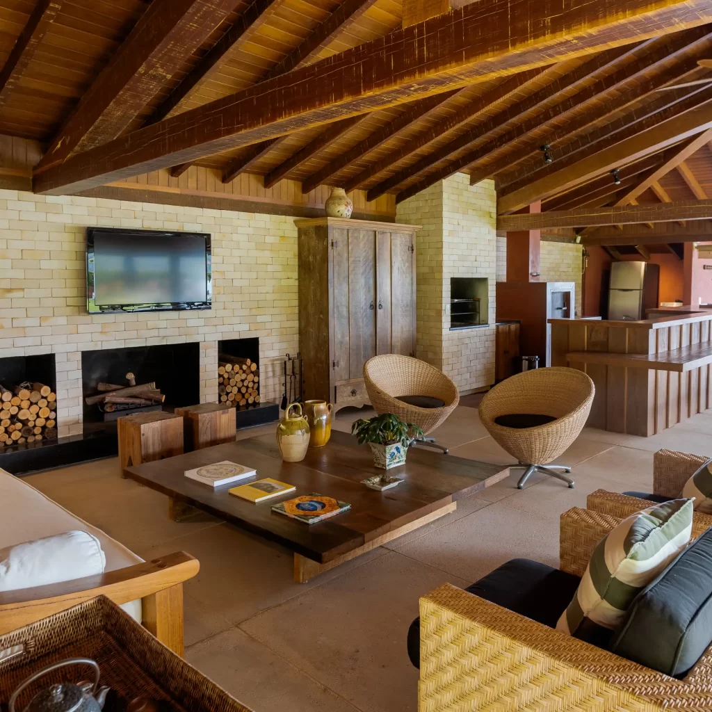 - Ambientes integrados: sala de TV, sala de jantar, sala de jogos e cozinha finamente equipada;