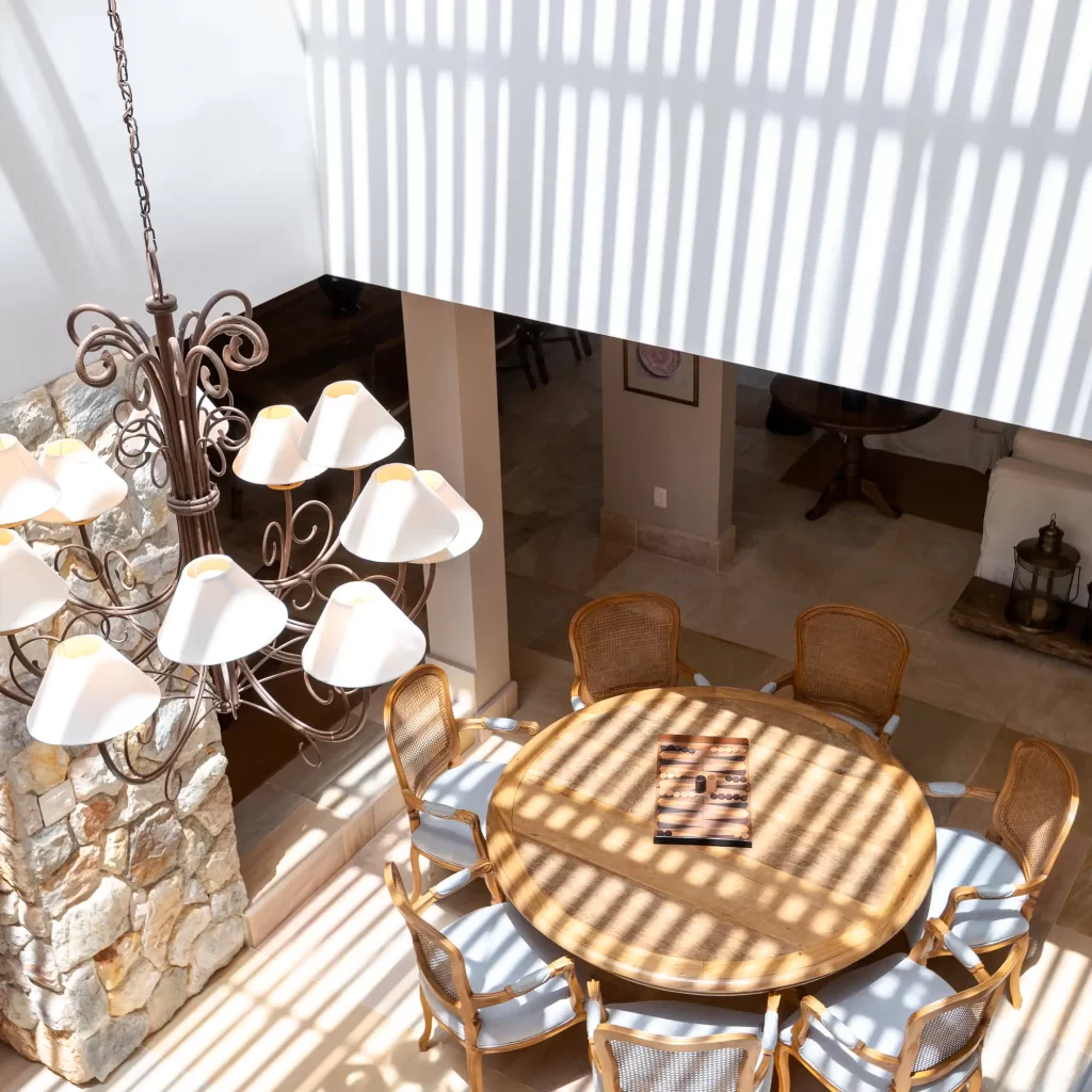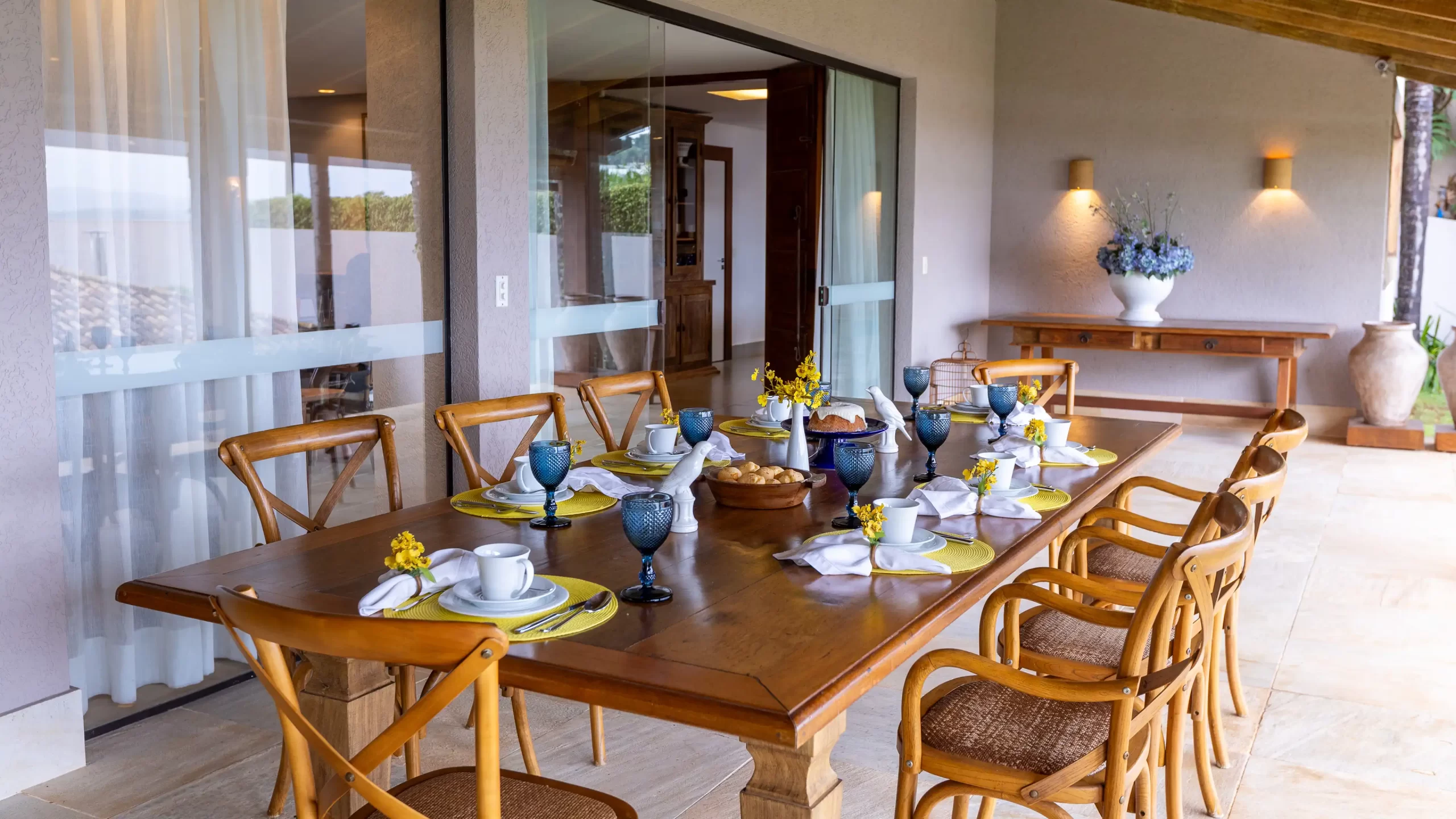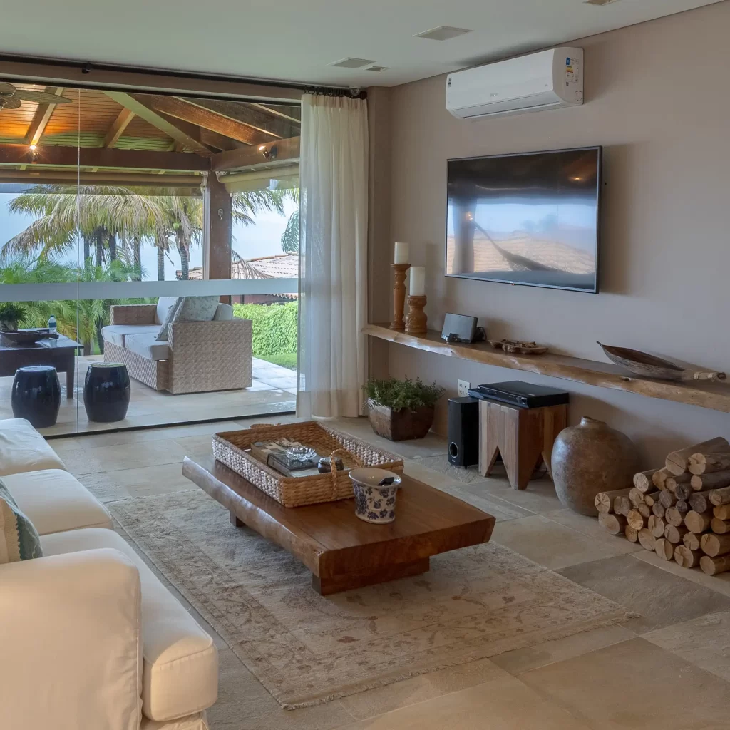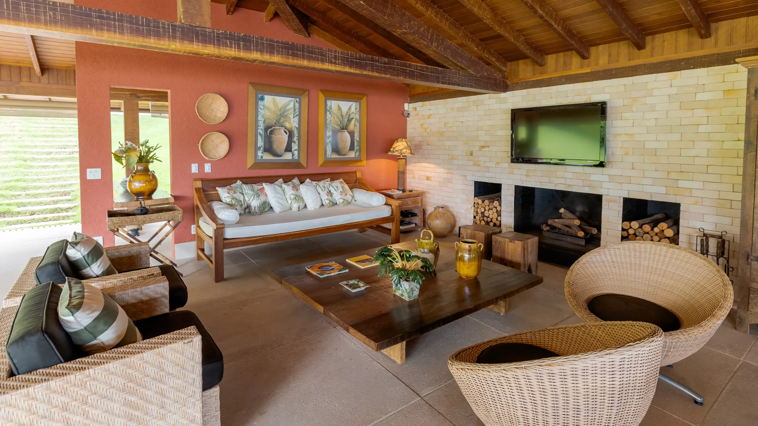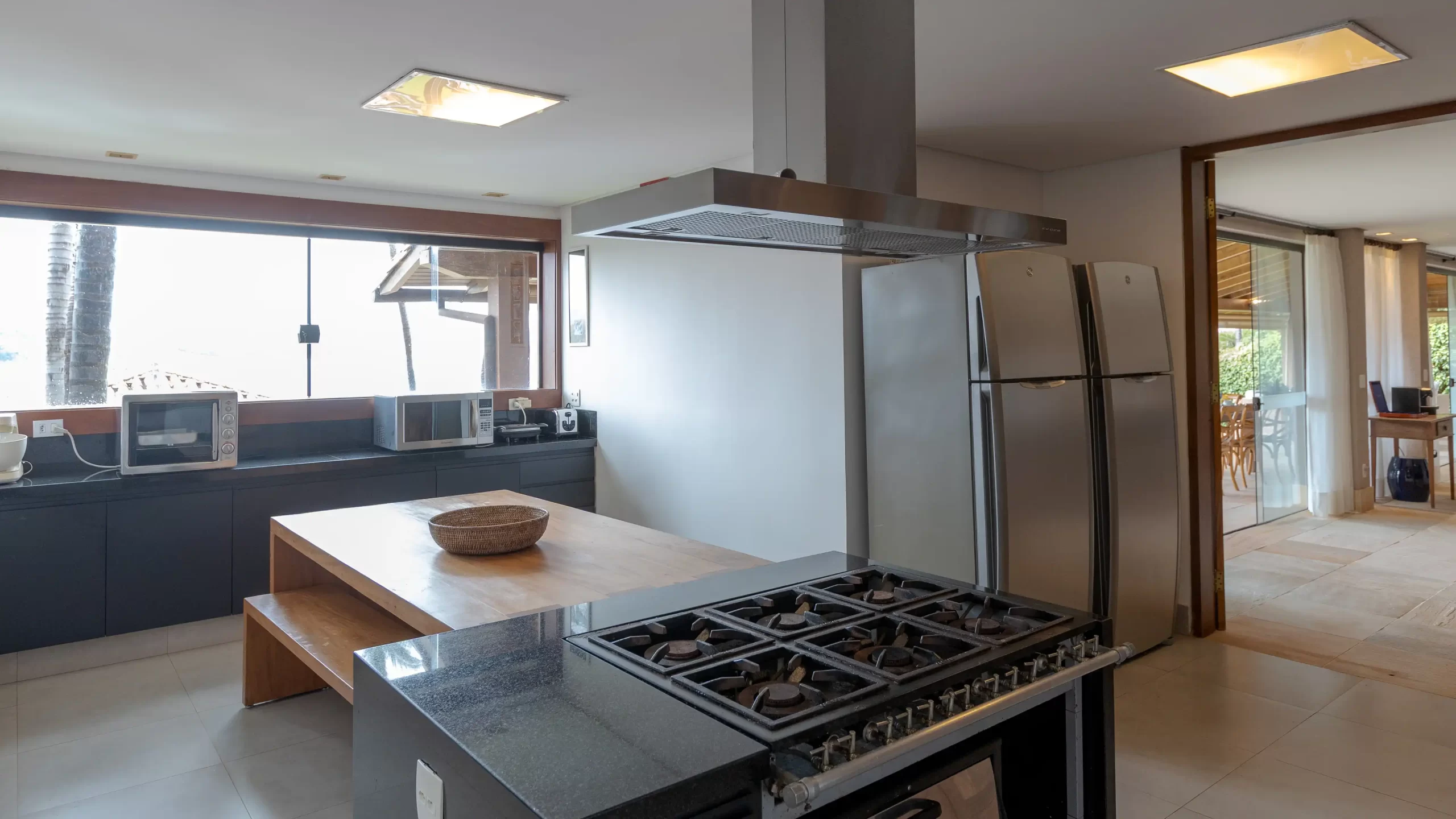 - Ambientes integrados: sala de TV, sala de jantar, sala de jogos e cozinha finamente equipada;