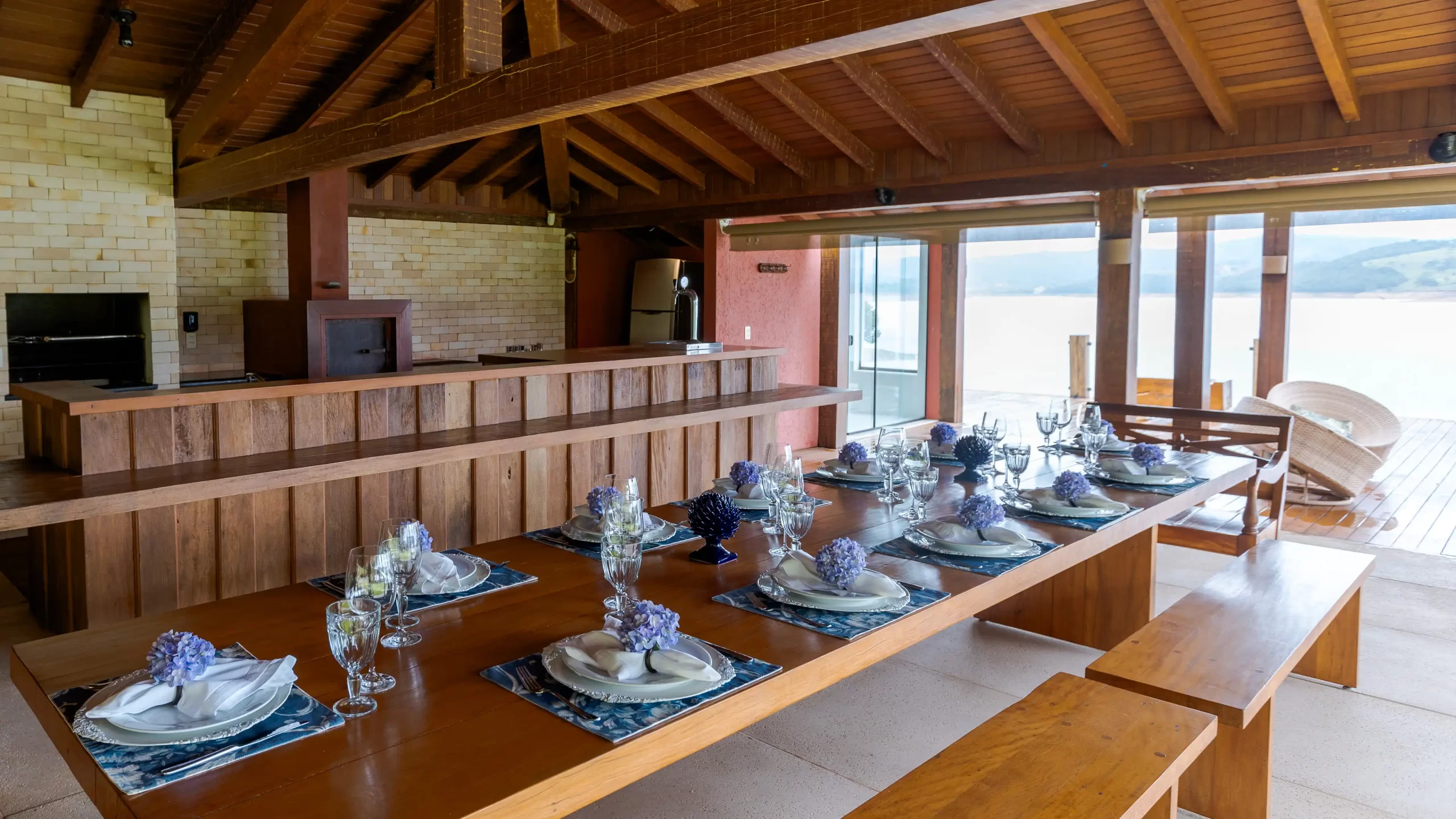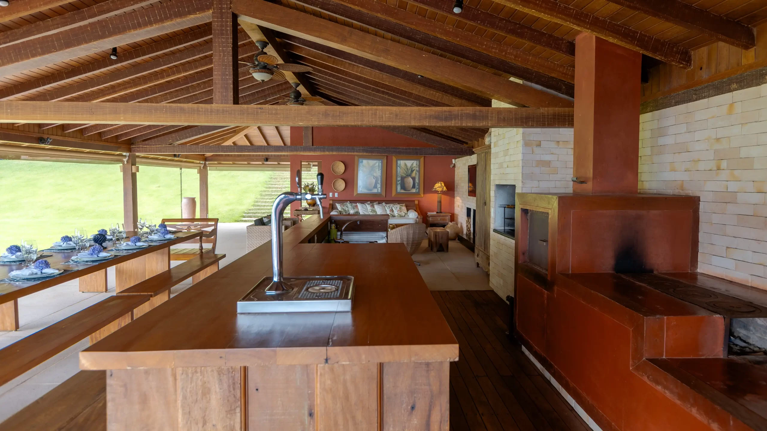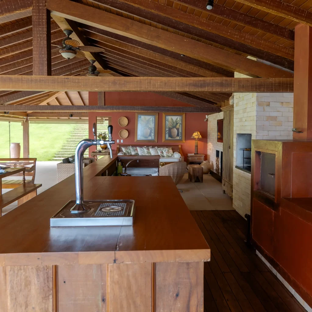 - Área gourmet completa: fogão industrial e a lenha, chopeira, máquina de gelo profissional;